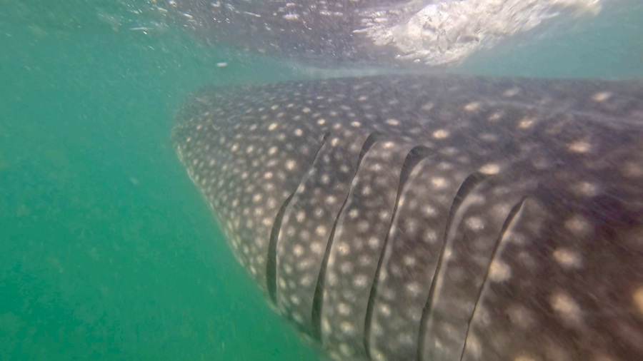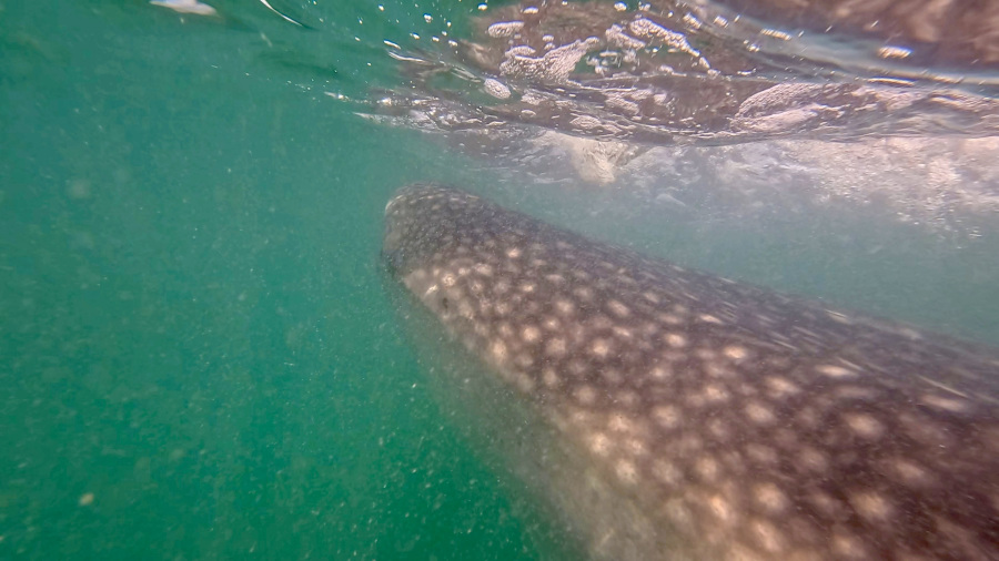 V zaliv ob La Pazu vsako leto pridejo kitovci (Whale Sharki) na hranjenje v velikem številu. Meseca februarja jih je tam veliko, zato obljubljajo izjemno srečanje z njimi. Jaz sem si rezervirala to aktivnost mesece vnaprej, saj so mesta omejena, kar je tudi prav. Živali so na prvem mestu, zato omogočijo znotraj ene ure vstop v območje s kitovci samo dvema čolnoma po 12 oseb plus vodič. Uro vstopa imajo turistične agencije sicer načeloma vnaprej zakupljene, ni pa nujno. Mi smo se odpeljali nekaj časa ven s čolnom in potem smo počakali na znak za vstop. Ko smo vstopili na območje, smo si morali najti svojega kitovca (jih je bilo vsak trenutek vsaj 5) in potem smo se razdelili v tri skupine po 4 osebe in se izmenjavali za plavanje s kitovcem. Čoln nas je kot skupino pripeljal do kitovca, potem smo plavali z njim do onemoglosti. Nato nas je čoln pobral, druga skupina pa je skočila v vodo in plavala z njim, mi smo pa čakali na čolnu, dokler spet nismo prišli na vrsto. Kitovci so tudi hitri in če jim ne ustreza naša družba, hitro izgine in ne moreš ga dohiteti.