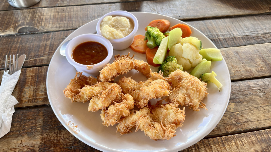 - kosilo (limonada, guacamole, 2x kokosovi škampi s prilogami) = 830 MXN (42,5 EUR)