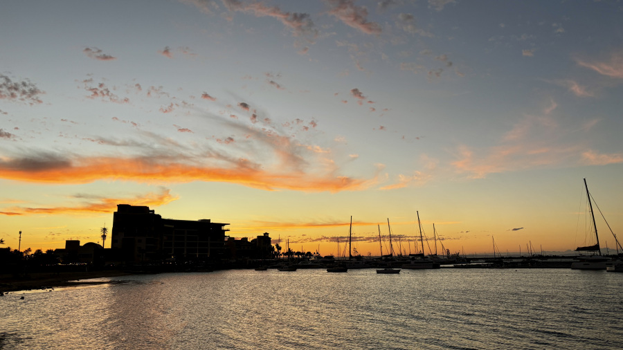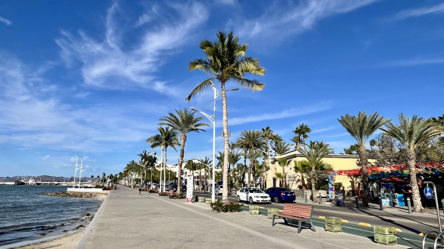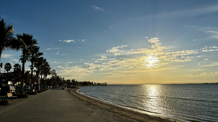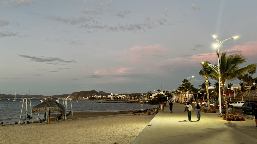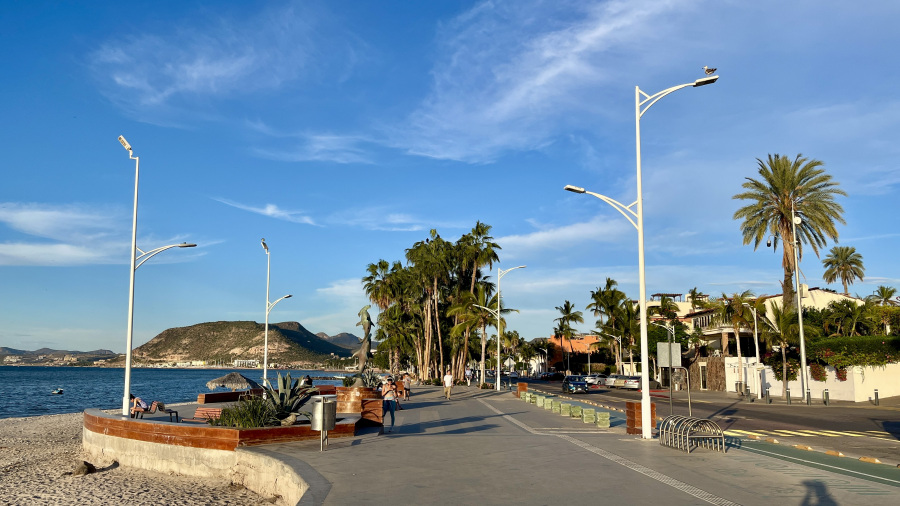 Do kosila smo bili nazaj, tako da sva si res lahko privoščila v miru odlično mehiško kosilo (guacamole in škampe v kokosovem cvrtju). Oh, kako je to dobro. Potem pa sva se sprehodila po rivi v La Pazu, ki je res zelo lepo urejena. Več kilometrov poti ob obali, na drugi strani pa restavracije, trgovine in lokali. Našla sva tudi odličen lokal s cimetovimi rolicami, ki so naju popoldne razvajale. Hotel sva imela na super lokaciji, par minut stran od mestnega vrveža, a še vedno sva imela vse zelo blizu in peš. Najetega avtomobila sploh nisva cel dan potrebovala. Dan sva zaključila s krasnim sončnim zahodom.