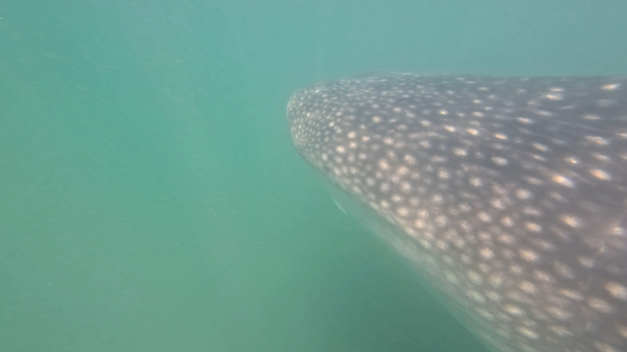 Jaz sem s svojo skupino imela res srečo (niso je imeli vsi na čolnu), da smo ob enem skoku imeli kitovca med njegovim hranjenjenjem in takrat ne plava, samo na široko odpre usta in se vrti v krogu. Wow, res nepozabno. Sicer sem šla kar štirikrat v vodo v tej eni uri in bila res dolgo časa z njimi povsem blizu. So pa tako veliki, da ga v celoti niti nisem uspela slikati ali posneti. Bili smo enostavno preblizu. Dotikanje je strogo prepovedano, prav tako plavanje pred njim in tudi potapljanje pod kitovca je tukaj prepovedano. Meni je to bilo res všeč. Kitovci zrastejo do 15 metrov in ti z nami so bili zelo veliki odrasli kitovci. Res noro doživetje. Sicer sem ga že videla med snorklanjem v Panami, a tokrat je bilo res za čisto desetko.