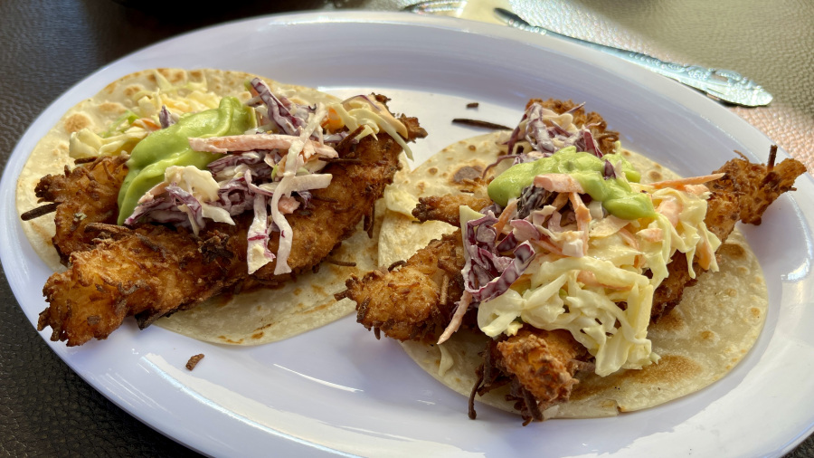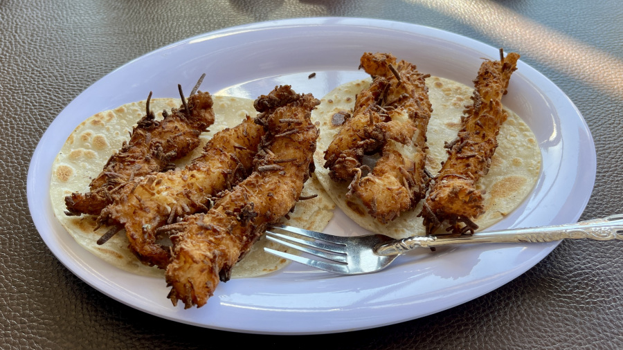 - kosilo (guacamole, 3x taco coconut shrimp, limonada) = 572 MXP (29,3 EUR)