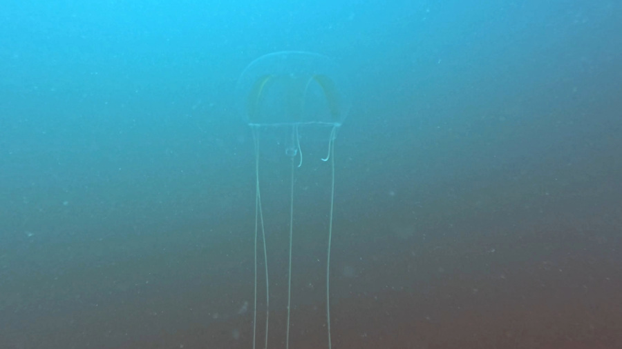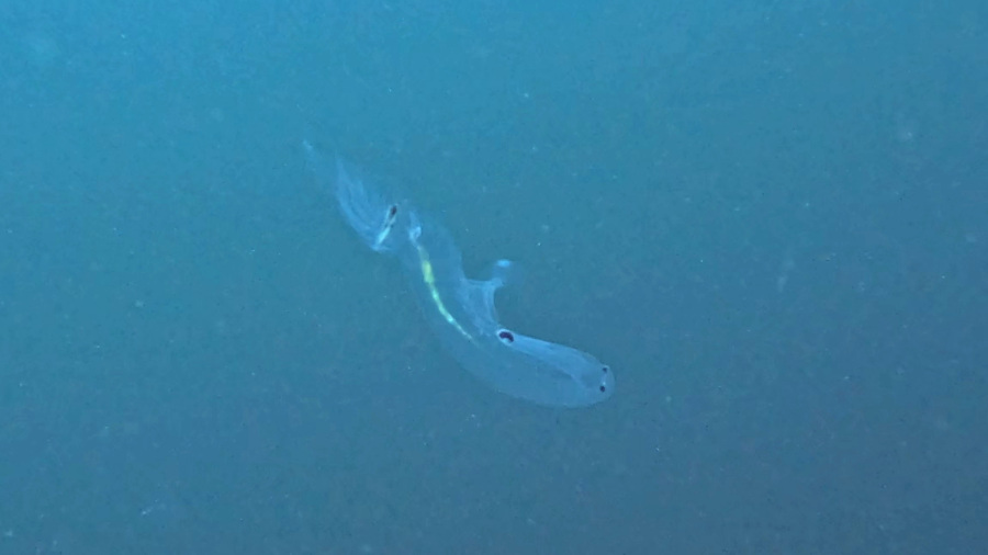 Pred mano sta bila še zadnja dva potopa na tem potovanju. Za konec je bilo na sporedu slavno potapljaško mesto “Gordo Banks”, ki se nahaja na odprtem morju. Takšni potopi so načeloma težji, ker ni koralnega grebena ali dna morja, da bi imel karkoli za orientacijo za globino. Kar hitro se lahko zgodi neizkušenim potapljačem, da gre ali pregloboko ali pa se nekontrolirano dviga/spušča, kar je seveda pri potapljanju smrtno nevarno. Tudi potop je globok in sicer na 30 metrih, tako da je že pomembno tudi počasno dviganje in čas, ki ga še lahko preživiš na določeni globini. Zato smo morali narediti včeraj najprej z isto potapljaško ekipo dva normalna potopa, danes pa smo bili primerni za ta potop. Na čolnu je bilo zelo valovito, ker je bilo vetrovno. Vozili smo se uro in pol na odprto morje, potem pa skočili v vodo. Hitro smo se spustili na globino 30 metrov, nato pa čakali na velike kladvenice. To potapljaško mesto je namreč znano po kladvenicah, ki pridejo iz globin na površje in to v velikem številu. Šmrc, šmrc… ni jih bilo. Niti ene same kladvenice in praktično niti ene druge ribe. In enako je bilo na drugem potopu. Samo 10 odtenkov modre. To je to. No, tu in tam se je mimo pripeljala kakšna povsem prozorna morska žival. Prozorne morske živali so evolucijsko prilagojene na življenje v odprtih vodah, kjer jim steklasto telo služi kot kamuflaža pred plenilci. Med najbolj znanimi so razne vrste meduz, rebrače, prosojni plaščarji (salpe), nekatere vrste mladic rib ter globokomorska riba Macropinna microstoma, ki ima popolnoma prozorno glavo. Bile so kar velike in meni tudi zanimive, ker jih še sicer nisem videla, a vseeno to ni bil namen potopa, tako da smo vsi imeli tisti dan res dolg nos. Naša skupina je sicer na koncu potopa, ko smo že zunaj čakali v vodi na čoln, videla celo kita grbavca na površju. Nisem ga videla pod vodo, videla pa sem kakšnih 30 metrov stran plavut.
