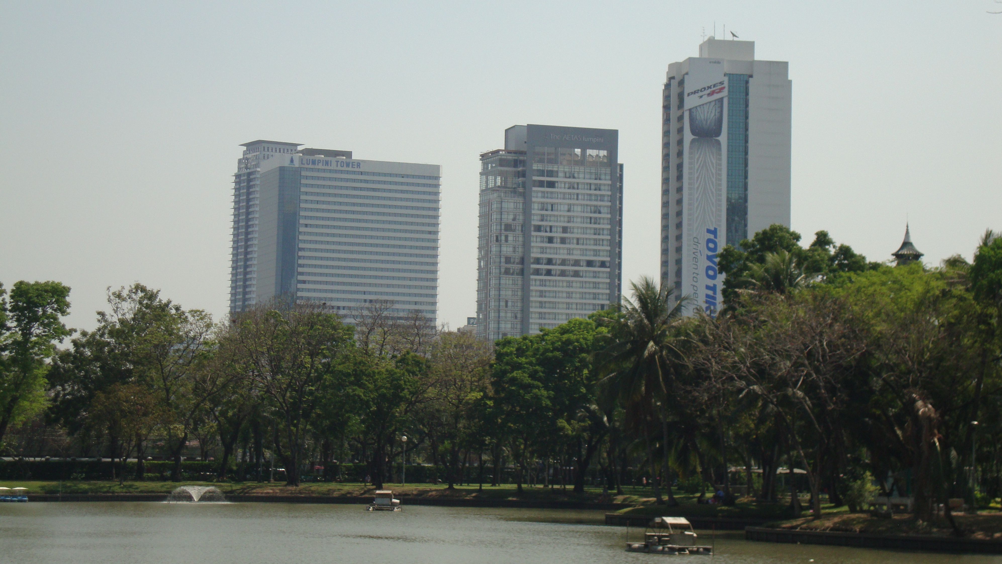 Taksi hitro pripelje na cilj in jasno mi je, zakaj je tako priljubljeno prevozno sredstvo za domačine. Ker po ulicah je takšna gneča, da ne prideš v eni uri praktično skoraj nikamor. Po reki pa le nekaj minut za enako razdaljo. Kupim si celodnevno karto za Sky Train (metro) in se peljem do parka Lumpini, ki je v poslovnem predelu Silom. Lep park z umazano stoječo vodo, v okolici pa sami visoki nebotičniki. V parku je tudi fitnes na prostem. Super ideja za to vročino.