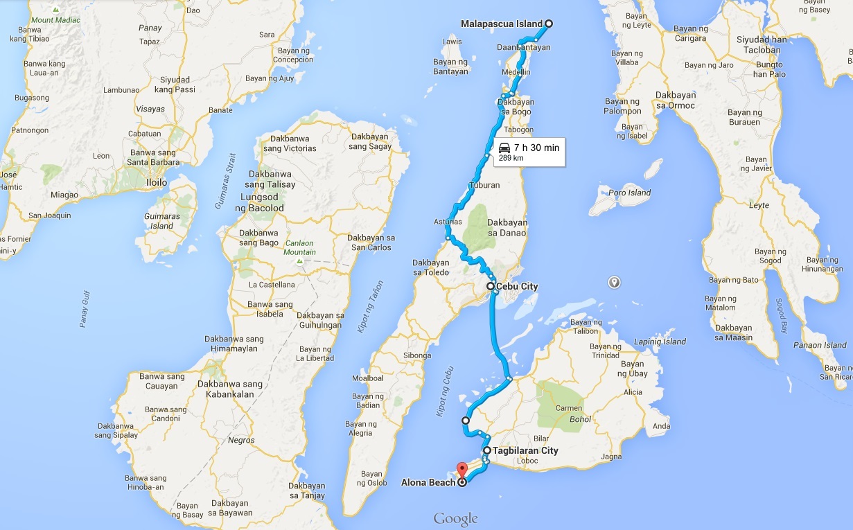 V Cebuju na postaji vzameva taksi do pomola 4, od koder vozi ladja na Bohol. Ugotoviva, da je naslednja šele ob 18h, zato hitro zamenjava pomol (to ni tako lahko kot se sliši – nov taksi, daleč stran) in ujameva zadnjo minuto ladjo ob 15.35. Dve uri vožnje z ladjo do Tagbilarana in taksi do hotela. Seveda se je že vmes znočilo, tako da prispeva v trdi temi v hotel, kjer ni žive duše. Sredi džungle, kup komarjev in midva. Jaz sem seveda rezervirala hotel nekoliko stran od glavne plaže, da se bova lahko v miru naspala.