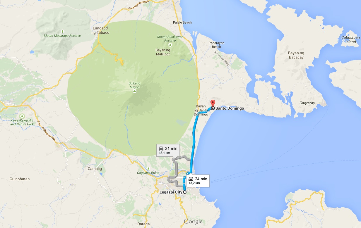 Ker sva včeraj obdelala vse v Legaspiju in še videla vulkan, greva danes na izlet malce na sever. Privoščiva si dolg spanec in odličen zajtrk, nato pa vzameva taksi do mesteca Santo Domingo severno od Legaspija. Do tja je 20 km in dogovoriva se s taksistom, da naju pride čez 3 ure iskati na isto mesto.