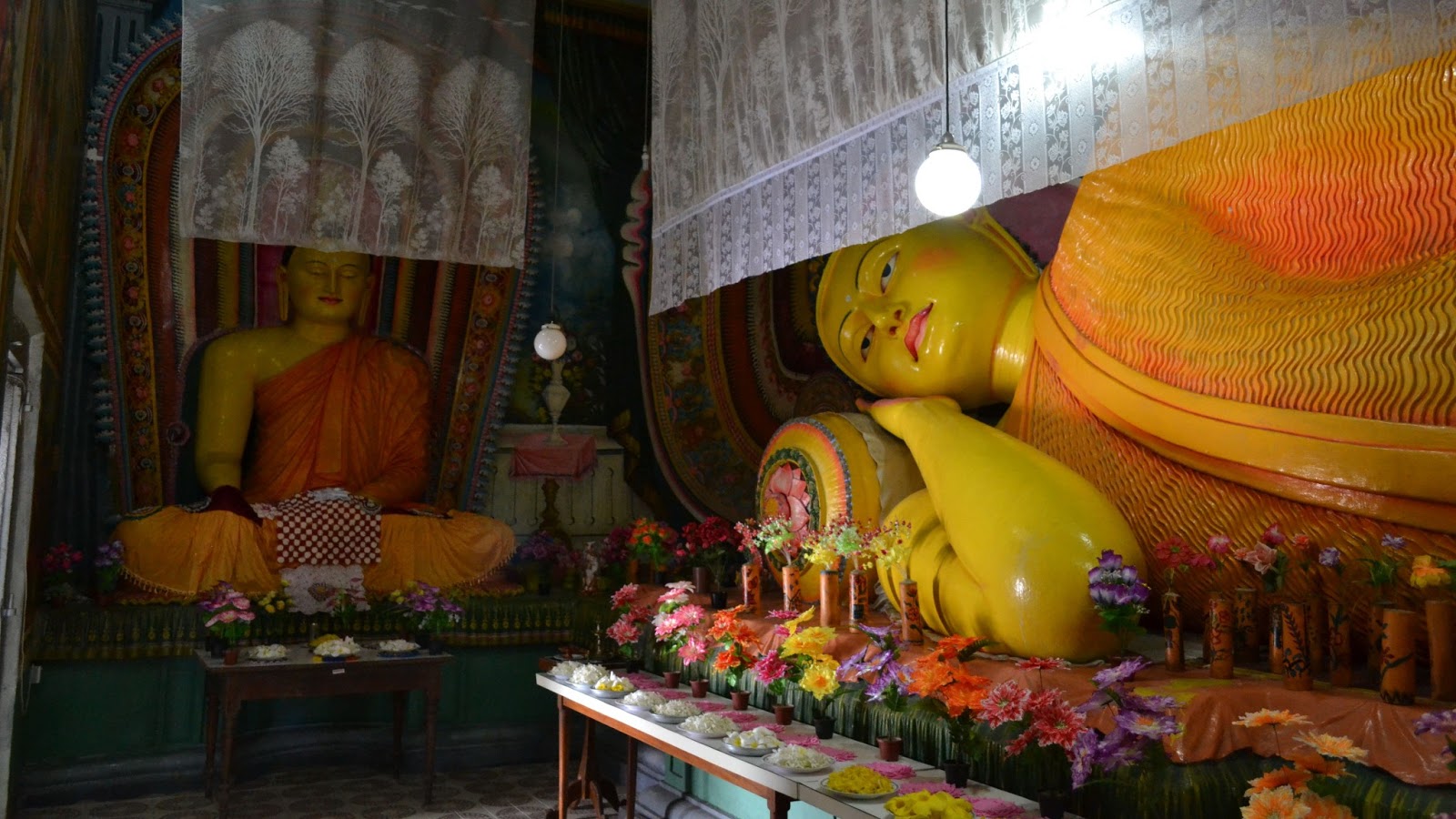Po zajtrku si najameva tuk tuk do Aluthgame, kjer je eden največjih budističnih templjev na Šrilanki, Kande Vihara (48 m v višino). Nisva niti vedela, da je danes največji državni praznik in zato so vsi domačini pri templju. Vsi so lepo oblečeni, nosijo cvetje ter hrano na posvetitev, zato je obupna gneča. Šofer se seveda ponudi, da naju počaka in naju bo peljal naprej. In tukaj je finta, ki mi je že tako poznana, ampak sva ponovno nasedla. Ker te seveda čaka in te cel dan vozi po tvojih željah, je seveda cena temu zelo primerna, kar sva ugotovila šele zvečer. Nič hudega, iz napak se učimo.