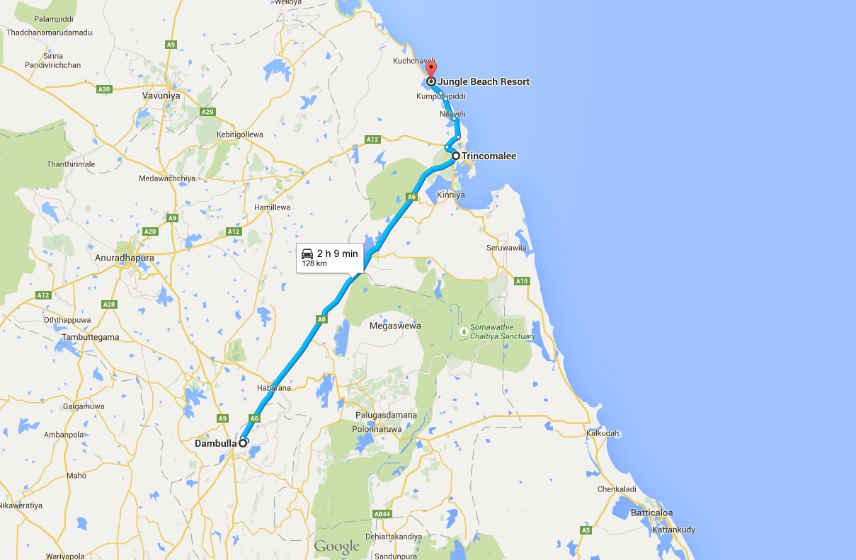 Dolga pot v Trincomalee naju vodi ponovno z avtobusom. Čeprav je peljal skoraj vso pot 100 km/h smo potrebovali 3 ure do Trincomalee. Seveda sva na avtobusu edina turista, saj je ta del Šrilanke za turiste popolna neznanka. Večina nadaljuje pot v Anuradhapuro in potem nazaj v Negombo in na Maldive. To je klasika. Midva pa sva se že doma odločila malo drugače.
