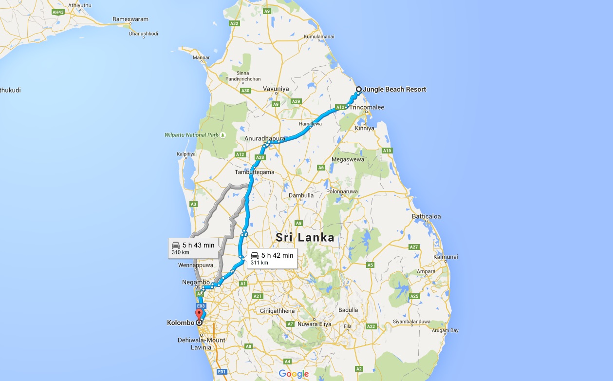 Zadnjič obilen kraljevski zajtrk in na pot. Tuk tuk do Trincomalee in uspeva priti na avtobus, ki pelje direktno v Colombo ob 9. uri. Menda pelje vsako polno uro. Pot je zelo dolga, vroče je in avtobus je za povrh tako poln, da še dihati ne moremo. Šofer pa tako divji, da nas premetava na polno. Še dobro, da sva sediva zadaj, ker spredaj se ne da gledati te norije po cesti. Druga polovica poti hitreje mine, cela pot pa traja celih 7 ur. V Colombu je strašna gneča, hotel hitro najdeva in je zelo posrečen. Sprehodiva se po ulici, zagledava MacDonald’s in seveda hitro na kosilo. Sprehod ob morju do hotela in pošteno utrujena zaspiva.