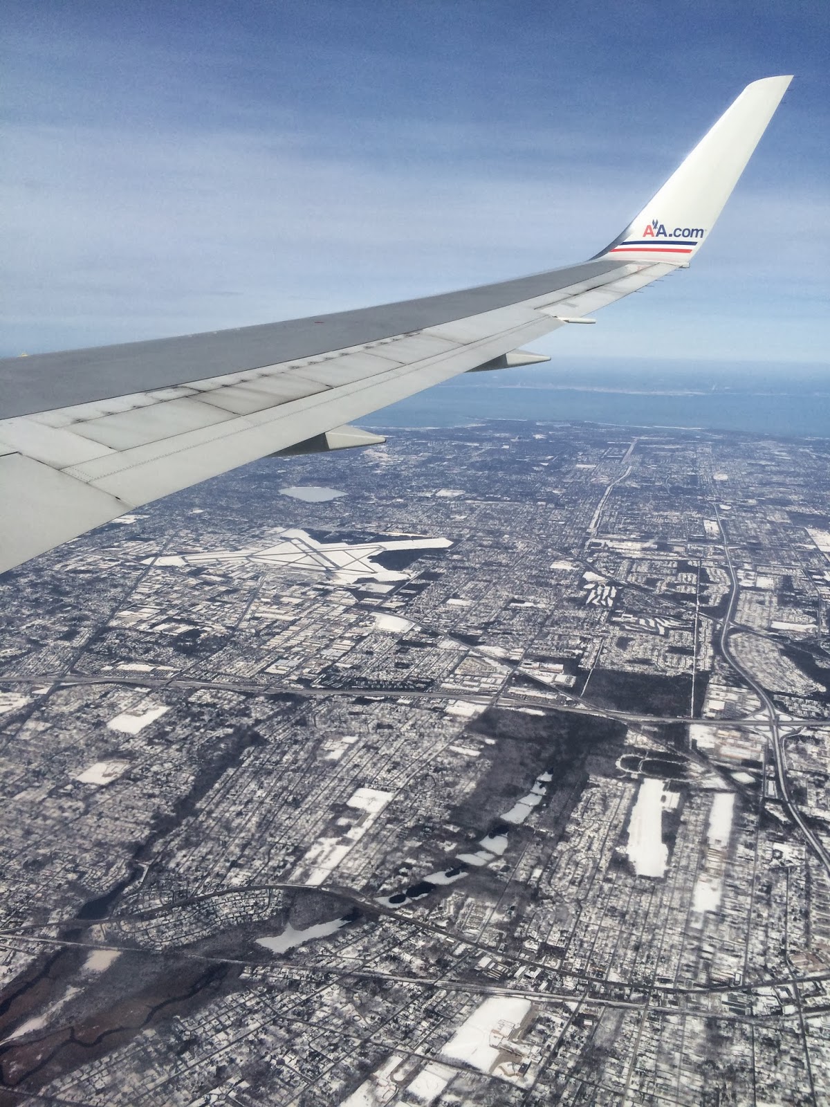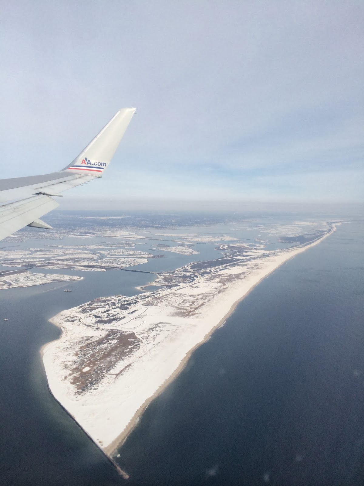 Prijazna voznica Branka naju pobere še nekaj minut prej (na srečo) in samo naju zelo hitro ter varno pripelje do Milana. Imava cel luksuz, saj sva sama v celem kombiju in vso pot lahko spiva. V Milanu se vkrcava na letalo American Airlines. Vsi so nama govorili, kako je AA zanič prevoznik in da bova že videla. Midva se nimava kaj pritoževati – hrana je bila odlična, stevardese hitre, ustrežljive in prijazne. Le ni bilo tv-ja, a ga niti nisva pogrešala. Po dobrih devetih urah leta prispemo nad zasnežen New York. Priletimo od enih po njihovem času, zato je pogled z letala fantastičen.