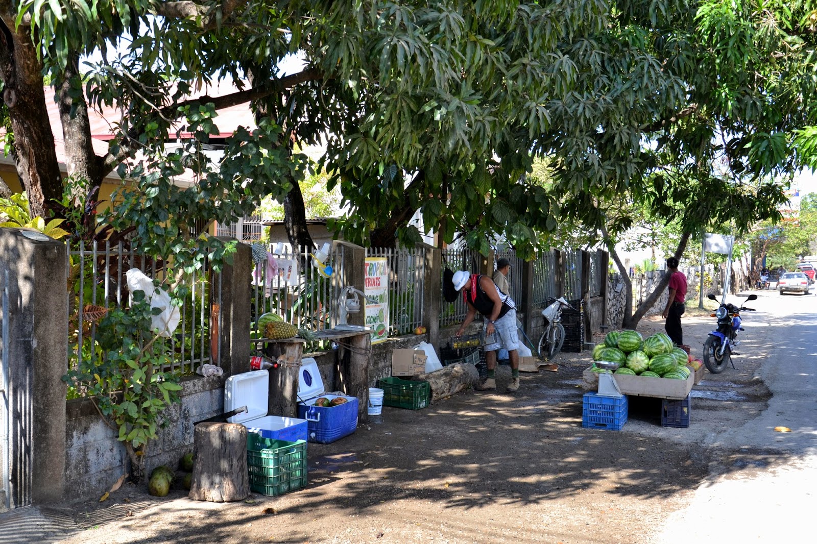 Niso nama povedali, da se na začetku plaže izliva v morje reka s precej široko strugo. Mostu seveda ni in prečkati je potrebno reko. Ob oseki pa reke ni oziroma je je zelo malo (spodaj na sliki). Vendar popoldan se približuje plima in na to naju k sreči opozori en domačin, ki je ravno tam. Drugače ni nikjer žive duše in počutiva se prav čudno. Domačin naju prijazno opozori, da imava časa še kakšni dve uri, potem pa bo reka narasla in se ne bova mogla vrniti. Hm, pa še opozorilo za krokodile. Sicer priveževa kolesi za en drog, se malce razgledava, ampak se odločiva, da vseeno ne bi rada spala na plaži. Vrneva se do plaže Samare in preživiva krasno popoldne.