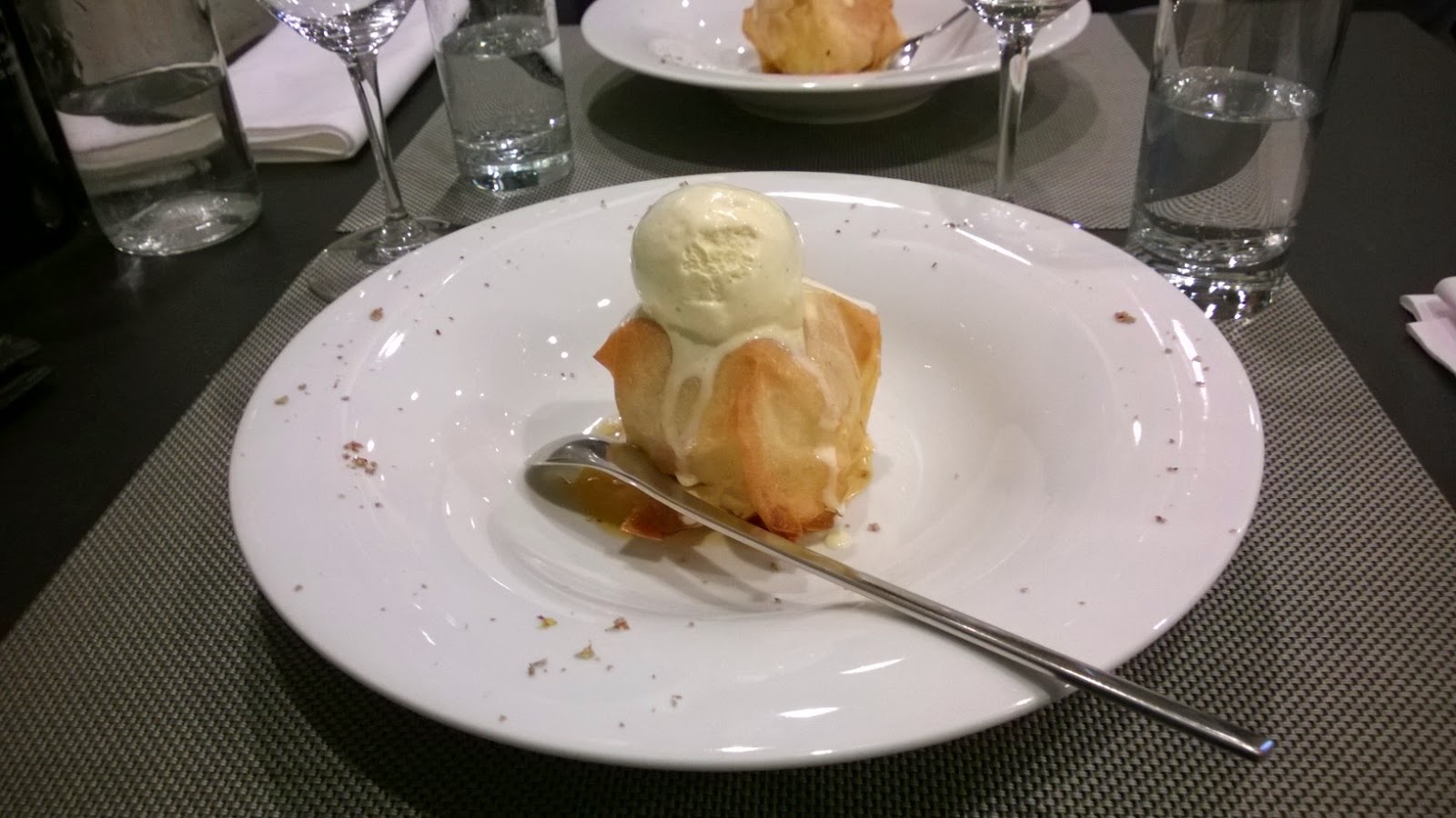 | Jabolčni zavitek malo drugače – v testu pečeno jabolko z maslom, sladkorjem, cimetom in vanilijevim sladoledom Vander, Ljubljana |