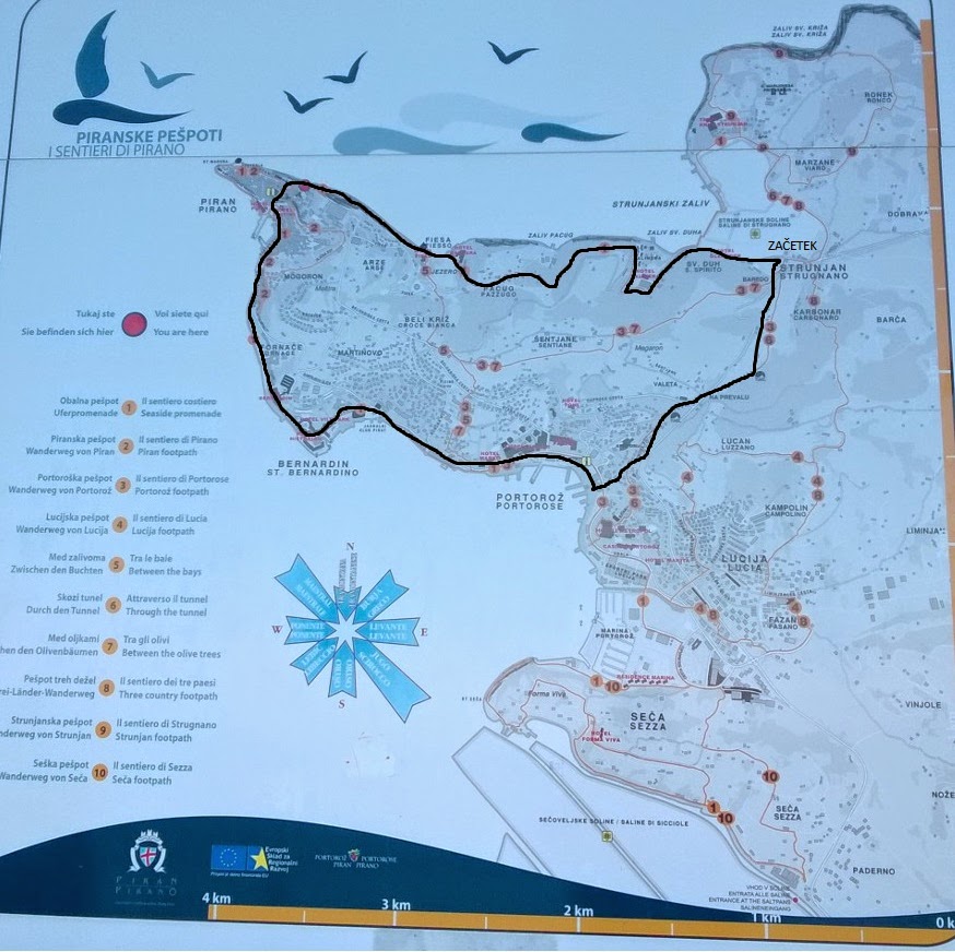 Pred dvema letoma sva prvič poizkusila prehoditi krožno pot med Strunjanom, Portorožem, Piranom, Fieso in nazaj v Strunjan. Nekoliko sva se sicer izgubljala, ker je res slabo označeno, ampak nama je vseeno uspelo. Pot je dolga dobrih 10 km in je pravi balzam za dušo. Za celotno pot potrebujeva dve uri zmerne hoje. Pot lahko seveda tudi pretečete ali prekolesarite z gorskim kolesom.