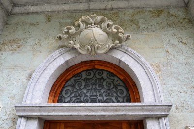 | Nad vhodnimi vrati je lepo umetelno oblikovan kovan naslov. Grad Strmol, Slovenija |