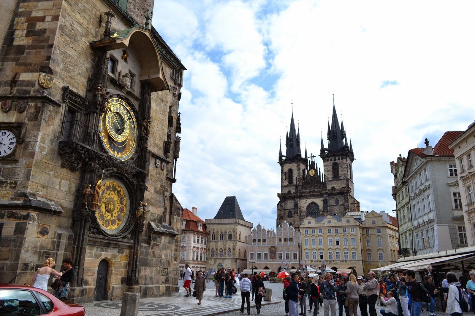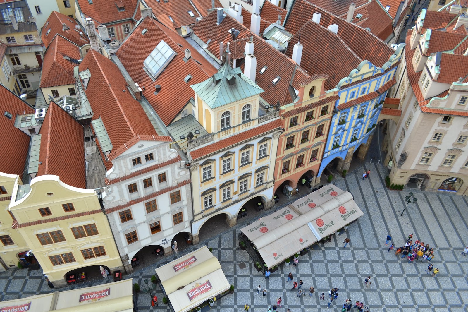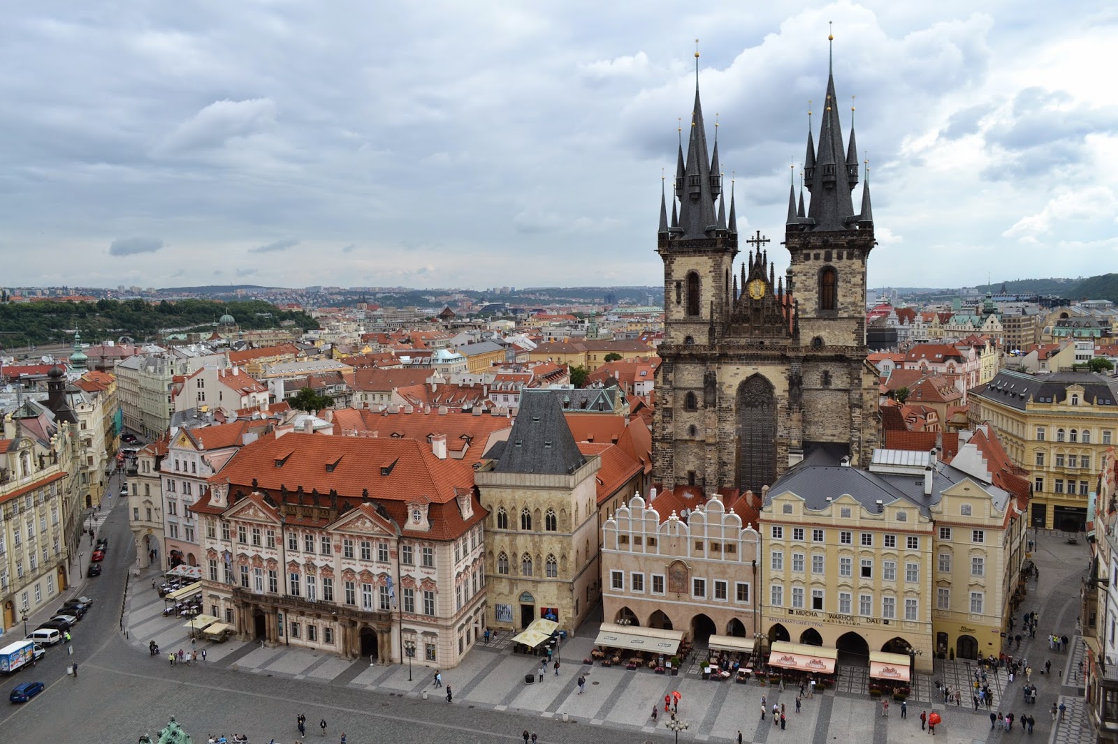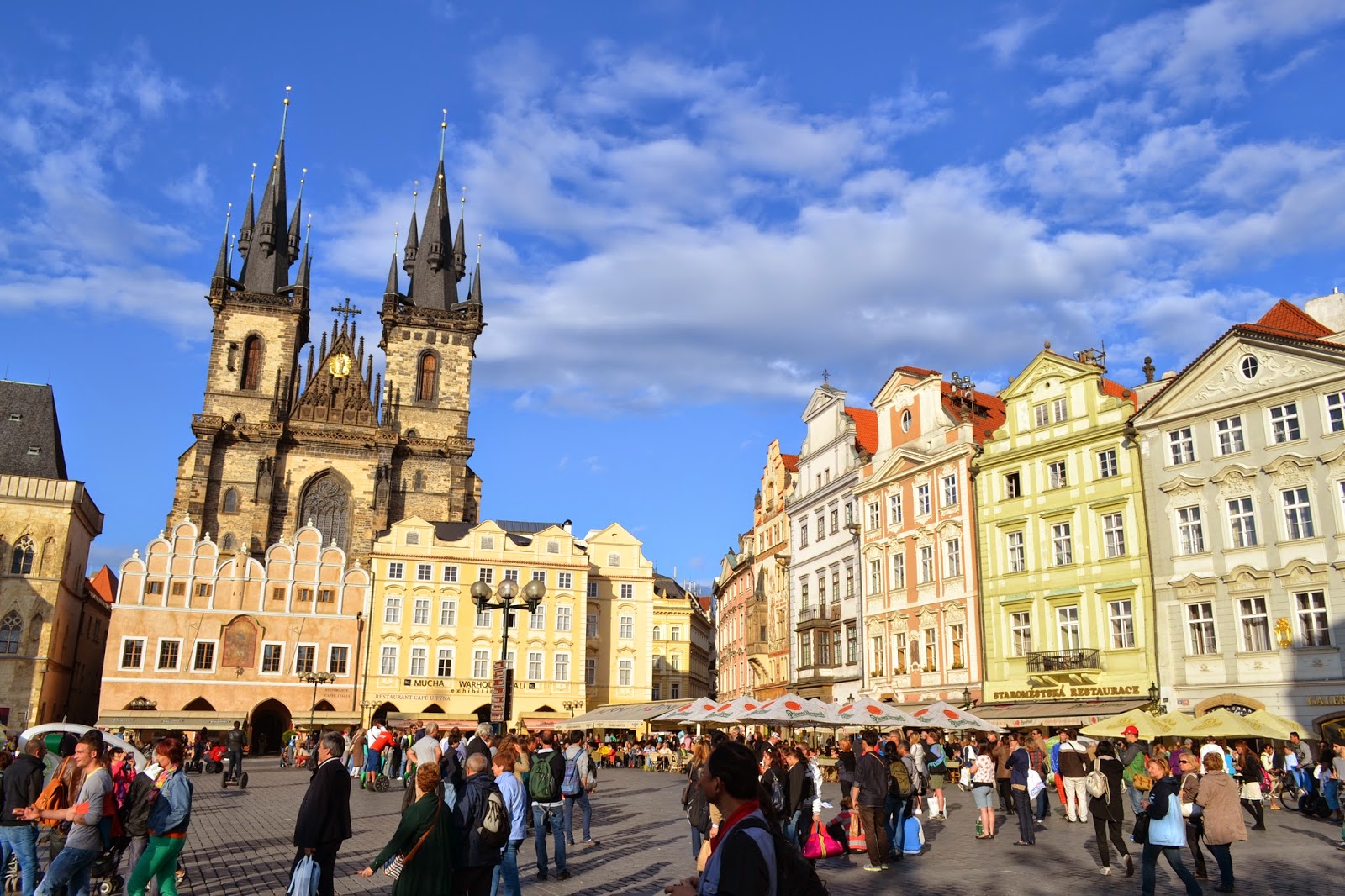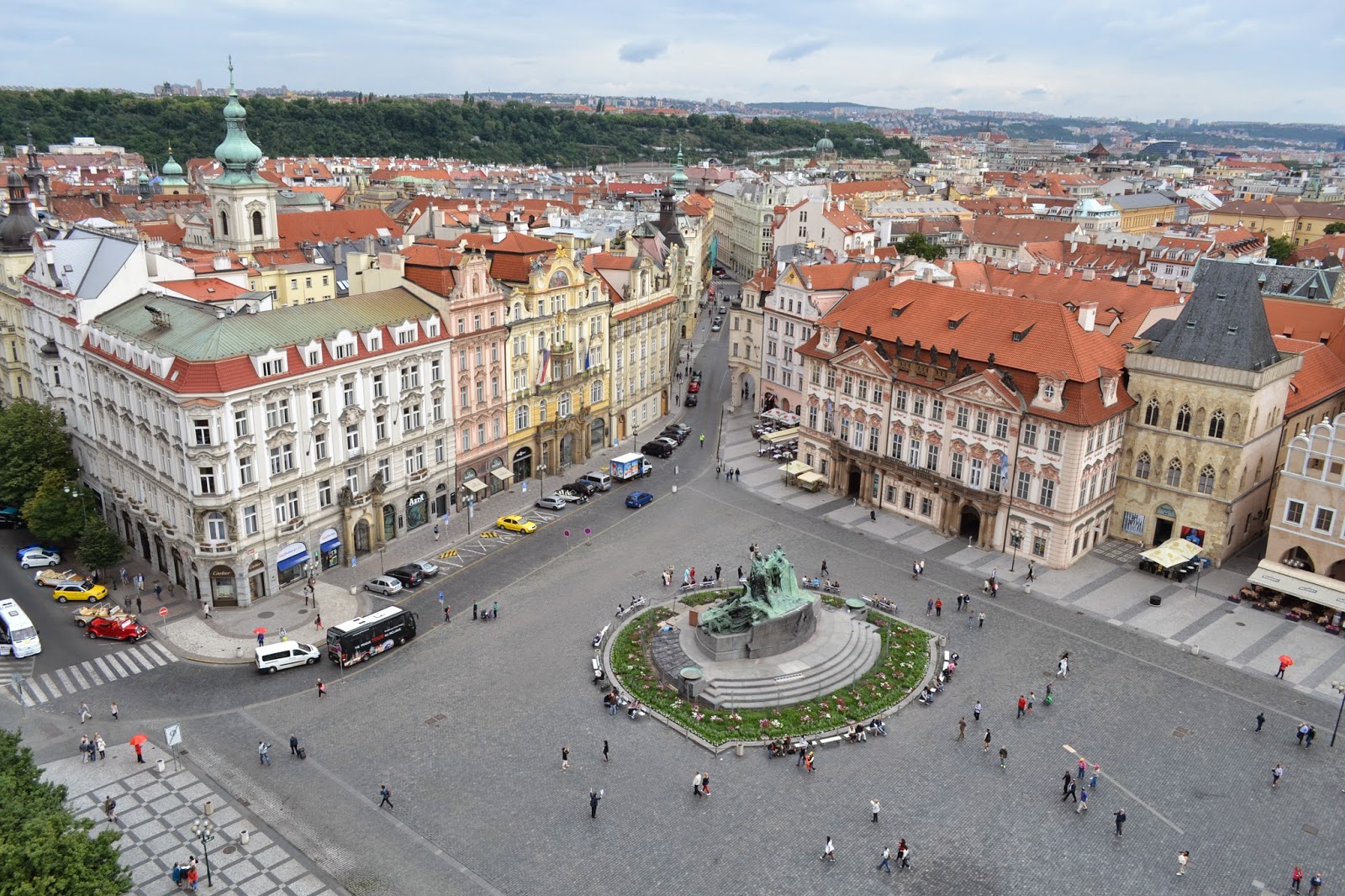 Na glavnem trgu najdemo krasen kip Jana Husa ter čudovit pogled na arhitekturo zgradb, ki ga obkrožajo. Trgu daje poseben čar tudi pogled na dvojno kupolo gotske cerkve (Church of Our Lady before Tyn) ter na mestno hišo s stolpom. Na trgu je precej živahno od jutra do poznega večera, saj so na vsakem koraku ulični umetniki, ki neprestano zabavajo množico turistov. Na trgu je tudi precej stojnic s tradicionalno hrano ter seveda veliko gostinskih lokalov.