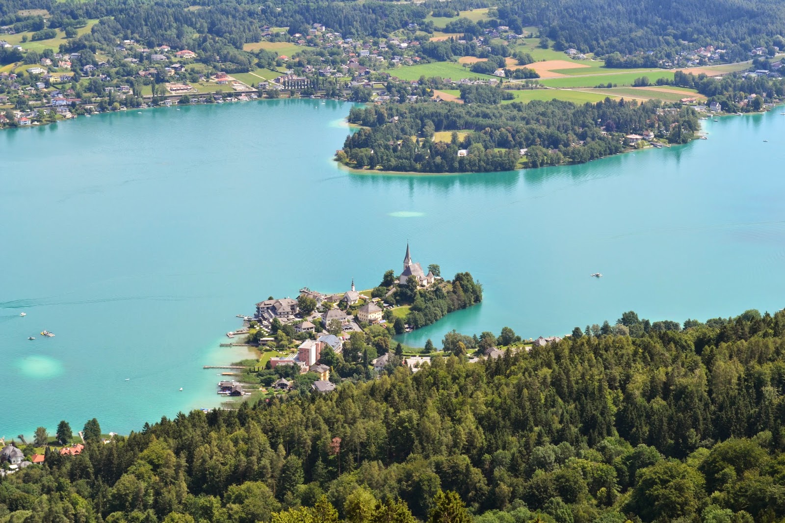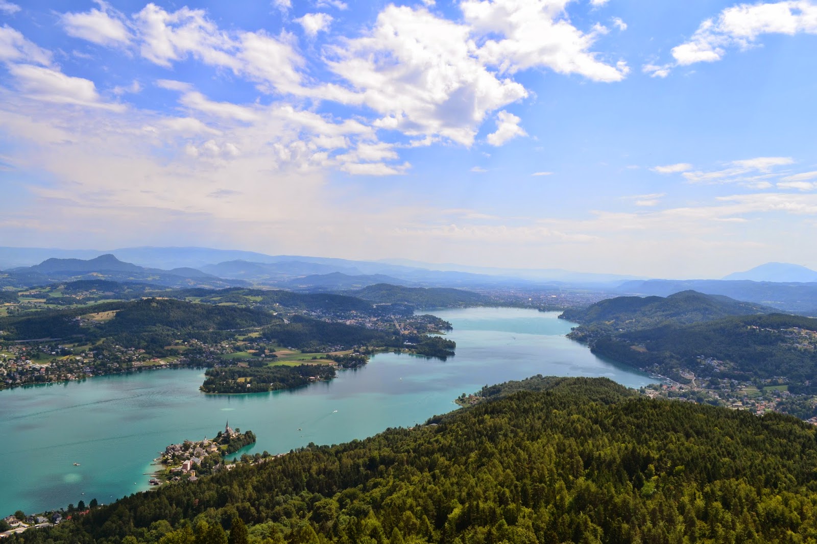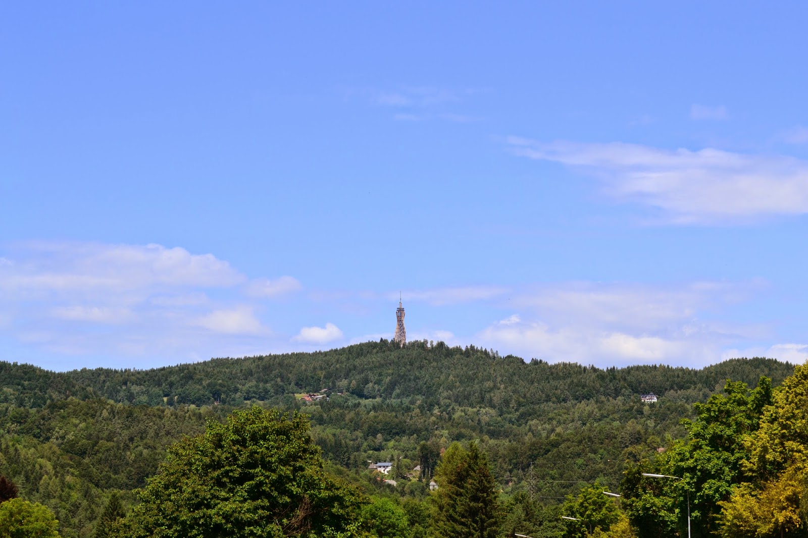 Že nekaj časa sva imela “na piki” enodnevni izlet do povsem novega razglednega stolpa ob Vrbskem jezeru, ki leži na hribu Jedvovca v Avstriji. Danes je bila vremenska napoved popolna za popoln panoramski razgled. Pyramidenkogel, kot ga nazivajo Avstrijci, je nadomestil obstoječi stolp, ki je bil zgrajen že v šestdesetih letih prejšnjega stoletja. Natečaj za nov stolp je bil razpisan po vsej Evropi, zmagala pa sta celovška arhitekta Markus Klaura in Dietmar Kaden.