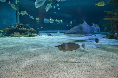 | Pravi morski pes plava nad vašo glavo. Tropicarium, Budimpešta, Madžarska |