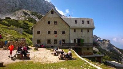 | Cojzova koča na vrhu – od tukaj naprej se lahko podate še na Grintovec. Kokrsko sedlo, Slovenija |