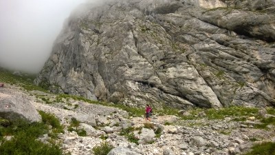 | Zadnja tretjina poti poteka po kamnitem pobočju. Kokrsko sedlo, Slovenija |