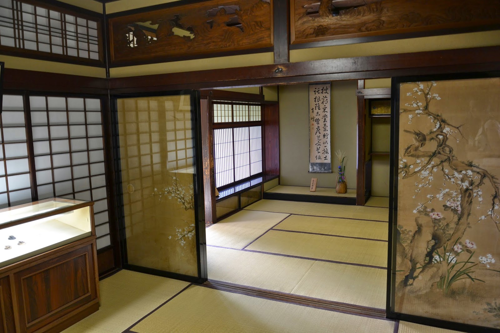 Po kosilu se sprehodiva še do posebne četrti HIGASHI CHAYA-GAI, kjer še danes v tipičnih lesenih hišah nastopajo prave gejše. Hiša OCHAYA SHIMA (Ochaya pomeni čajna hiša, Shima je ime hiše) je odprta tudi za obiskovalce (vstopnina 3 €). Z veseljem sva si ogledala notranjost in vse prostore. Hiša je iz leta 1820 in ima več prostorov. V pritličju je kuhinja in toaletni prostori ter kopalnica, v prvem nadstropju pa skupen prostor ter trije večji prostori. Vsak od njih je razdeljen še na dva dela in sicer na del, kjer je gost čakal na predstavo, in del, kjer je gejša nastopala in se med nastopi tudi preoblačila. Prostora se lahko tudi ločita z drsno steno med posameznimi nastopi. Na tleh je po celotni hiši tatami in se s čevlji ne sme vstopiti v hišo. Na ogled so tudi lasni in kozmetični pripomočki gejš ter porcelan za čaj za goste. Zelo všečno in res zanimivo.