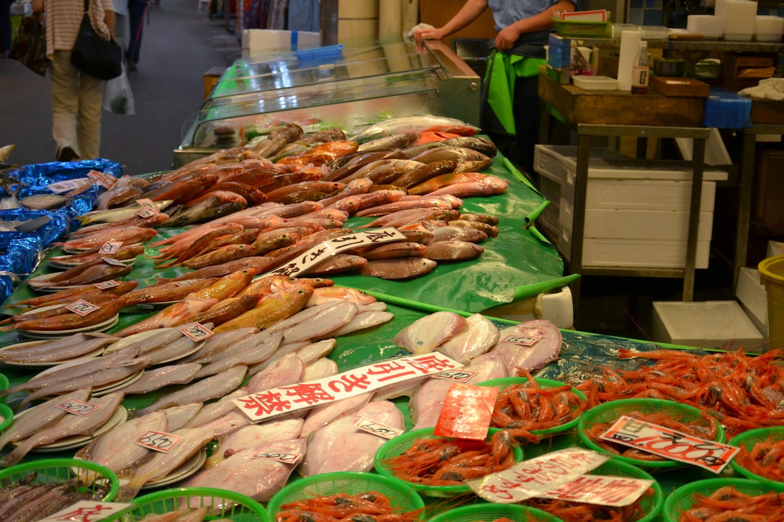 Hotel imava praktično čez cesto železniške postaje. V vseh hotelih je zelo običajno, da prideš in pustiš prtljago pri njih, če še soba ni pripravljena. Lepo jo shranijo in čuvajo do prihoda nazaj. Odpraviva se na mestno tržnico OMICHO MARKET, ki je zelo velika, urejena, čista in tiha. Čisto nasprotje tržnic po svetu. Morske dobrote, sadje, zelenjava – ni da ni. Kupim si fige, ki so naravnost božanske.