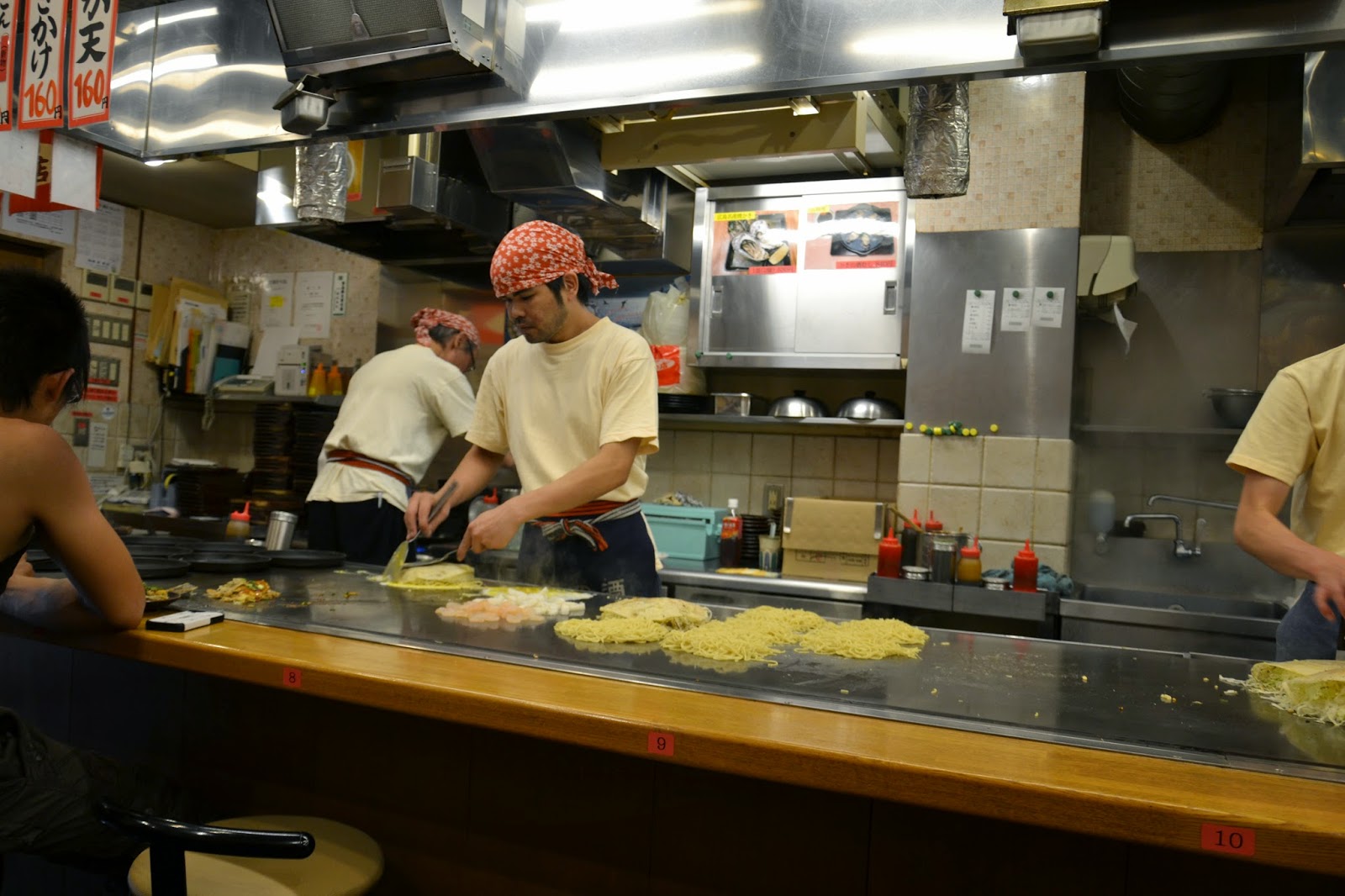 Midva pa sva si v Hiroshimi zadala drugi cilj – najti najboljši Okonomiyaki v mestu. Hiroshima je znana po tej odlični palačinki, ki je prav posebna. Pripravijo jo na vroči plošči, ki je kar pult od lokala. Najprej spečejo palačinko, na katero naložijo sveže zelje, kalčke, slanino in začimbe. Posebej skuhajo rezance in prilogo (morske dobrote), če si jih zaželite. Nato obrnejo na glavo tisto osnovo, naložijo čez testenine, na vrh pa še priloga ter 2 jajčki, sir in začimbe. Vse skupaj položijo v ponvico in slasten obrok je pripravljen. Zelo zelo zelo dobro in porcija je res ogromna!