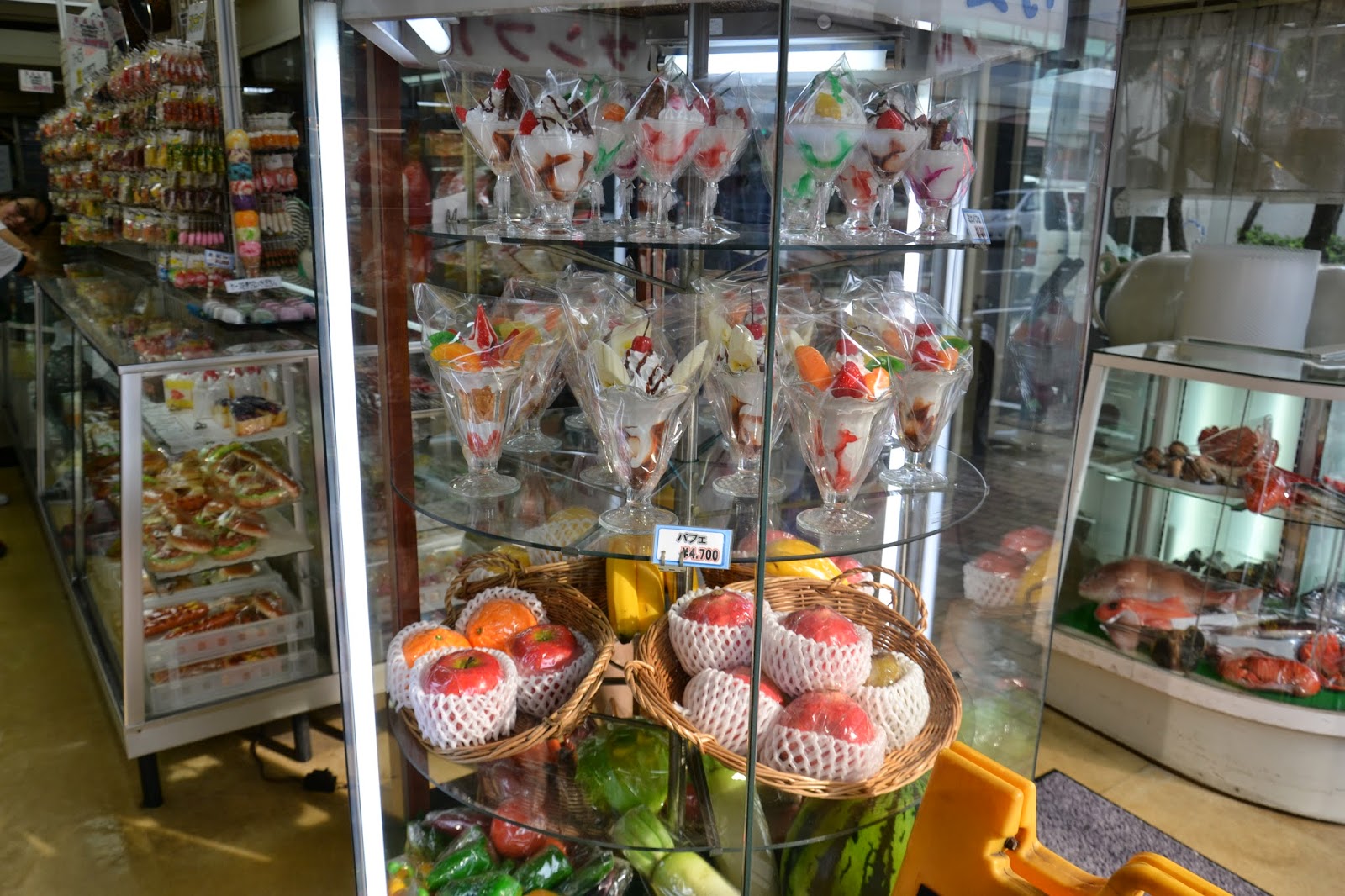 - jogurti, štručke =389 ¥ (2,9 EUR)