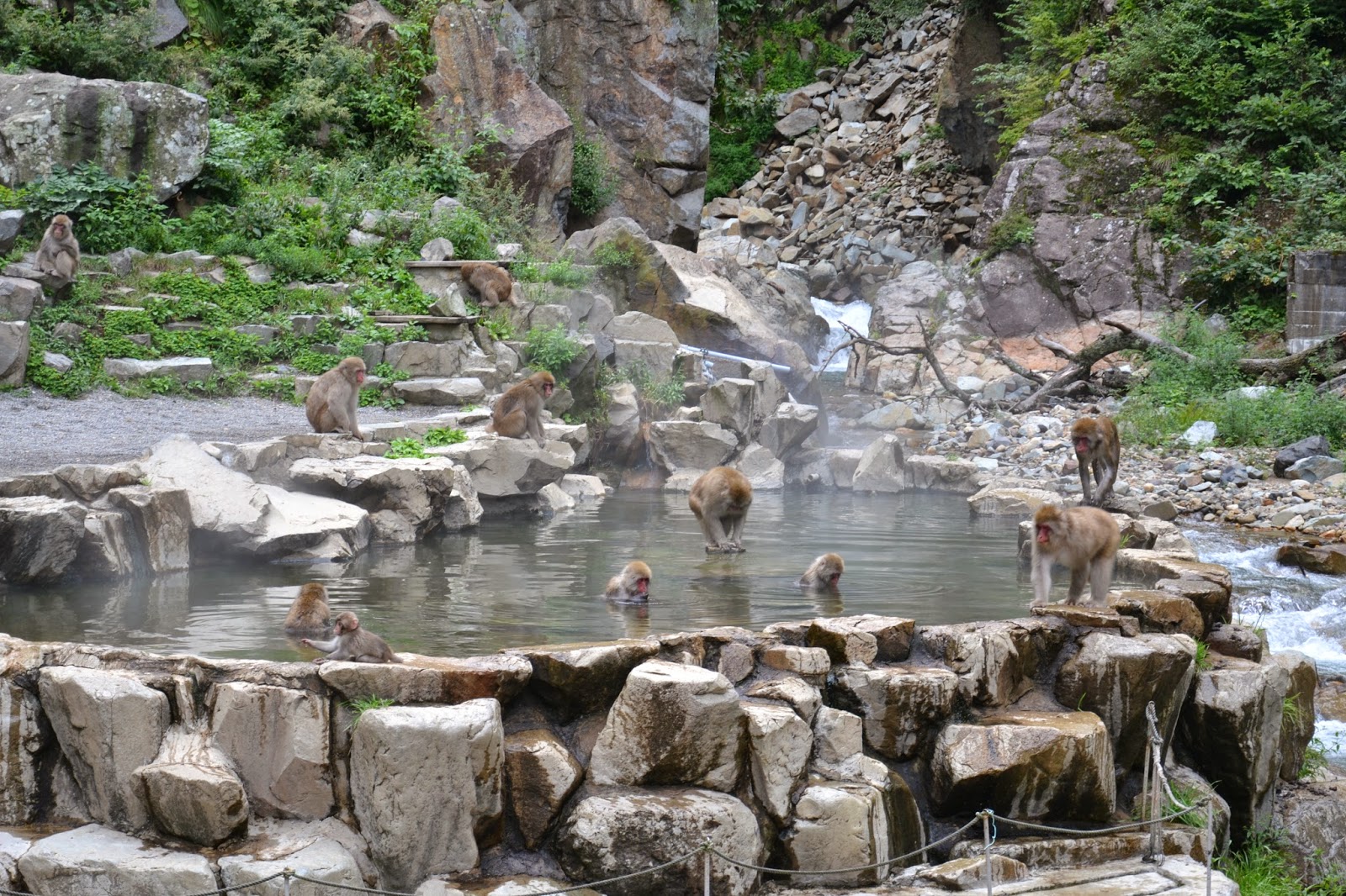 Po 45 minutah vožnje z avotbusom, katerega plačate kar šoferju, prispemo vhoda v JIGOKUDANI MONKEYS PARK (vstopnina 3,8 EUR). Lepa gozdna stezica nas po 30 minutah hoje pripelje do vhoda v park. Med potjo so poučne table, ki nas podučijo o življenju makaki opic. Med potjo pojejte tudi vso malico, ki ste jo prinesli s seboj, saj je hrana v parku prepovedana.