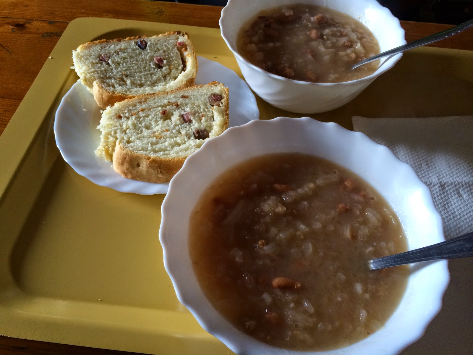 Koča na Poreznu je pozimi odprta za vikende in postrežejo vam z domačimi dobrotami. Midva sva se okrepčala z joto ter domačo ocvikovko. Njami…