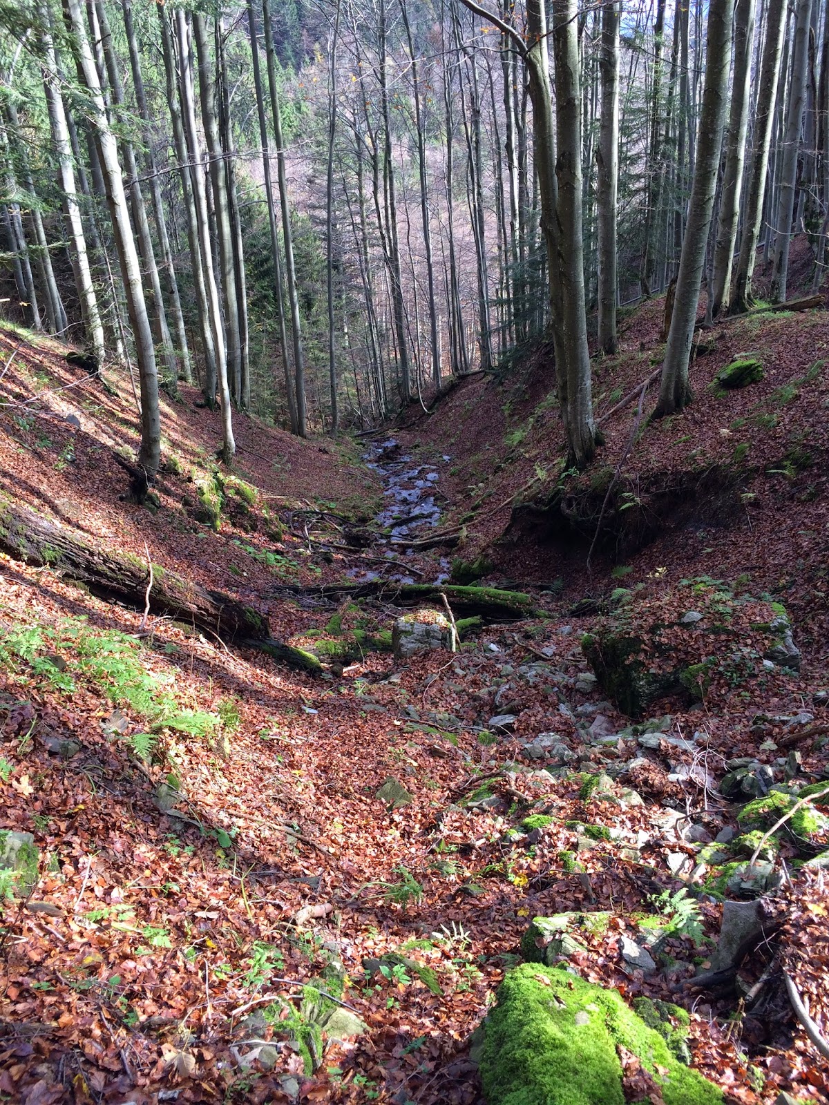 Začetni del poti poteka skozi listnati gozd, ki je v tem delu leta še posebej lepa. Midva sva zamudila živo obarvan gozd le za nekaj dni. Vse listje je (žal) bilo že na tleh, zato pa je bila res mehka listnata podlaga. Pot preči tudi 8 manjših potočkov, zato nujno potrebujete nepremočljivo obutev.