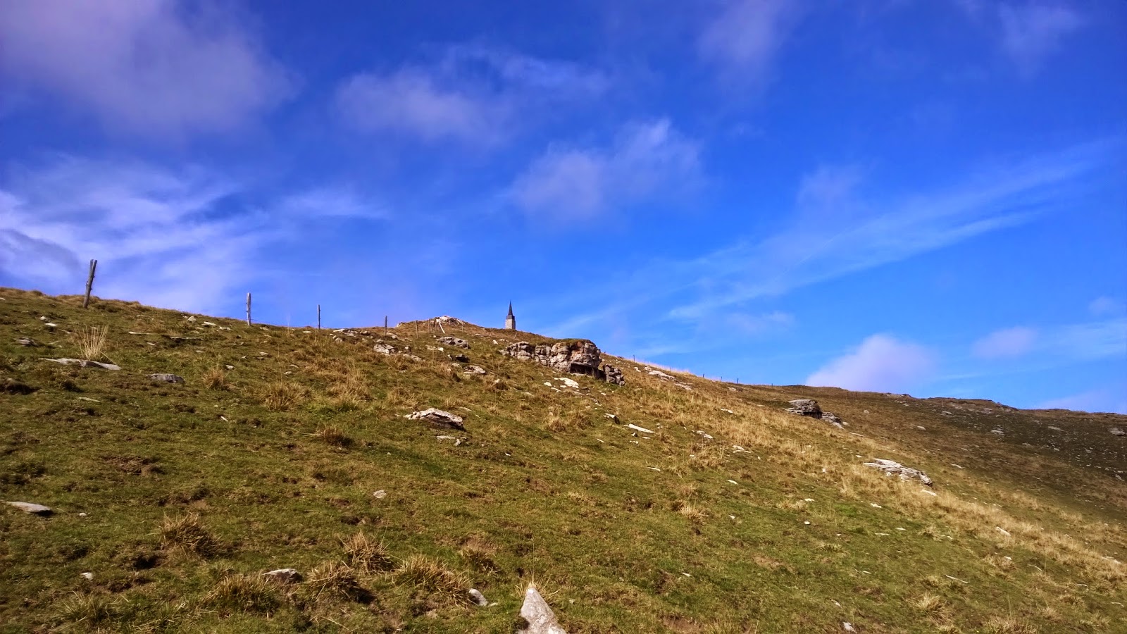 Pred vami je nato samo še pol ure hoje po grebenu do vrha. Vso pot od tu do vrha vam krasi prekrasen pogled na vse strani neba. Ena lepših planinskih poti, kar sem jih prehodila. Tukaj je v času po 1. Svetovni vojni potekala tudi meja med Kraljevino Jugoslavije in Italijo (Alpski zid), zato so še vedno po celem vrhu vidni zidani bunkerji za varuhe meje.