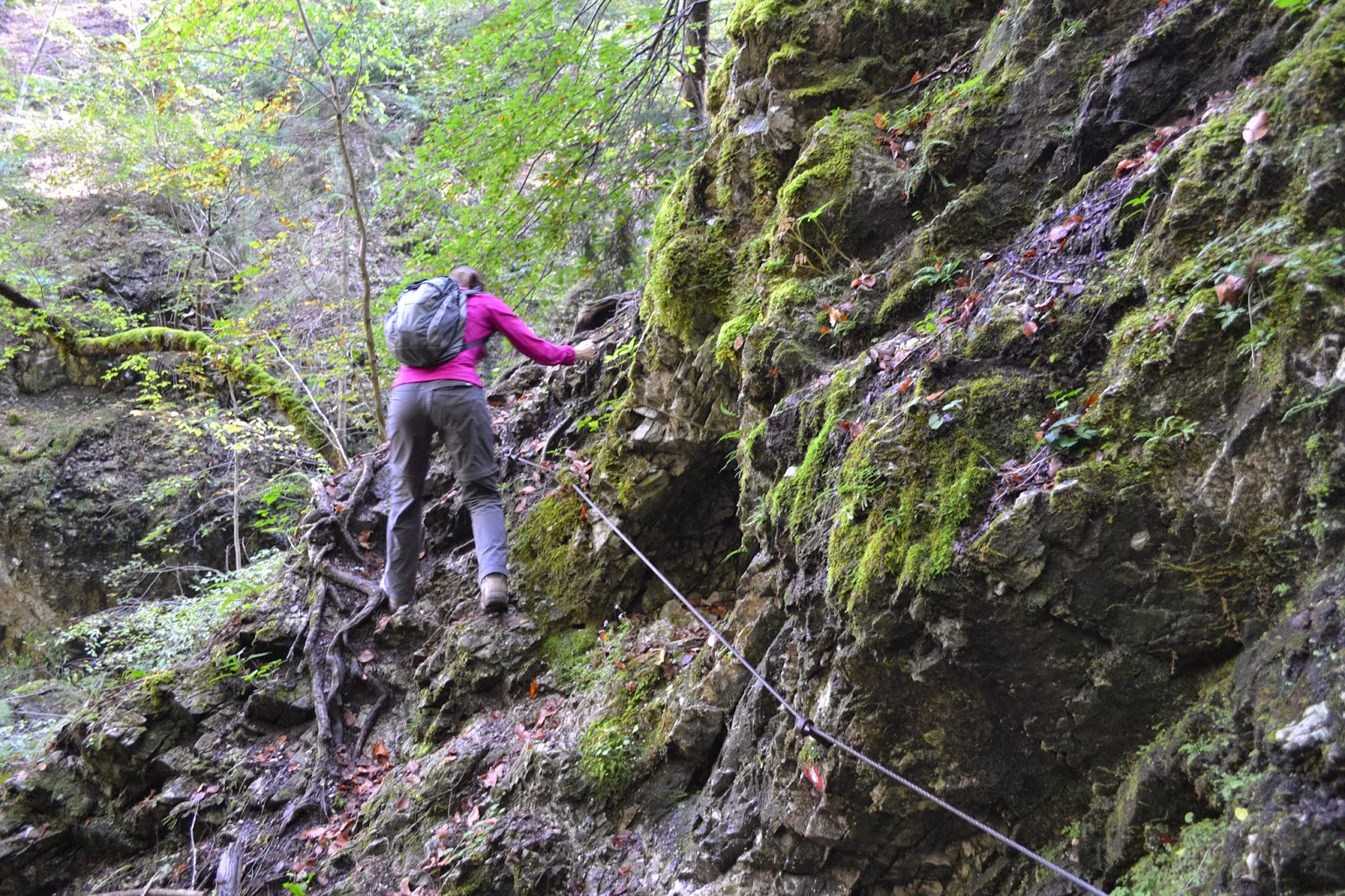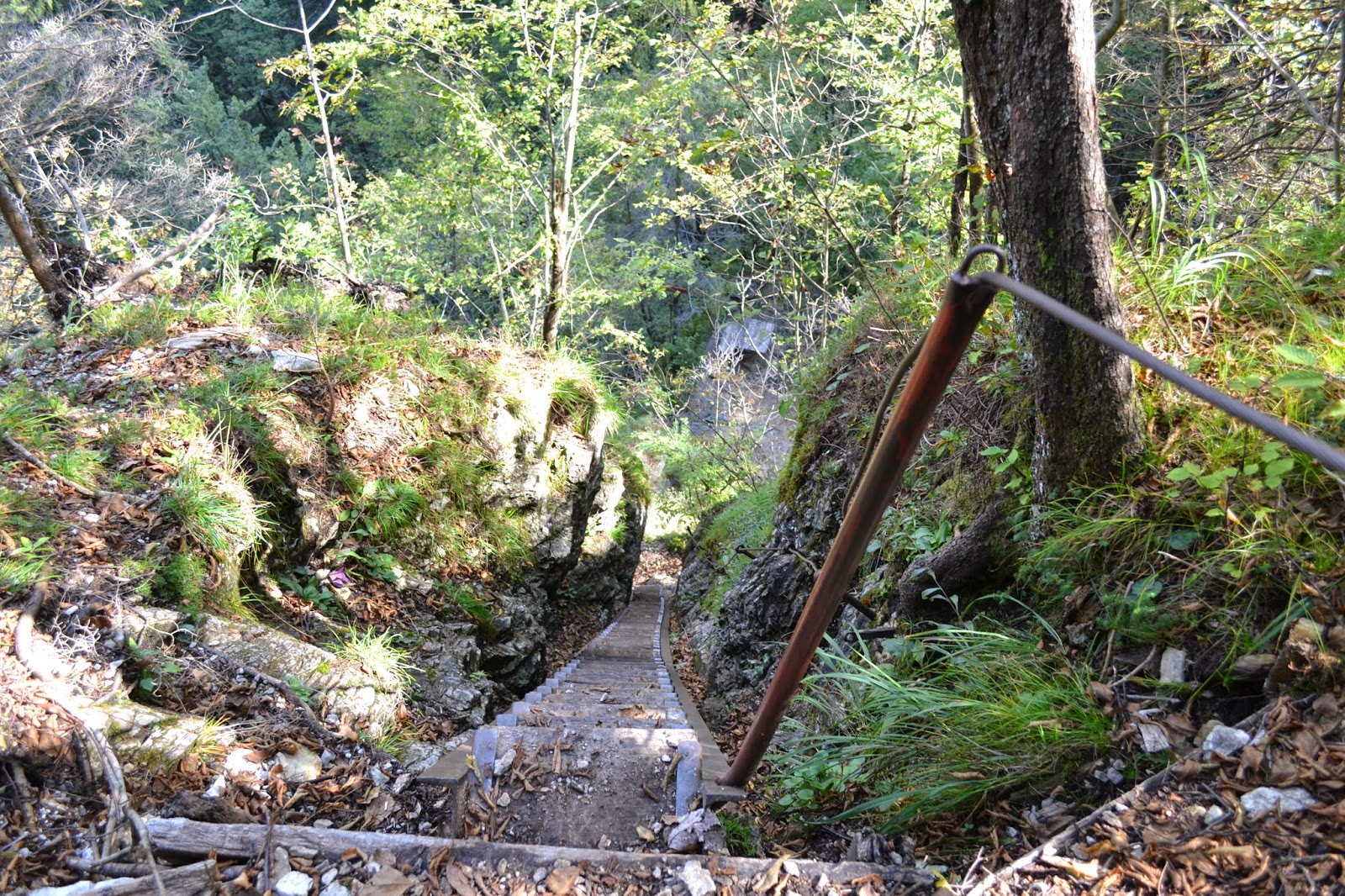 Večino letnega časa je tudi zelo mokro, tokrat pa je nagajalo še mokro listje, ki ga je bilo že zelo veliko. Včasih se je potrebno povzpeti tudi po jeklenicah in po zelo strmih stopnicah, tako da je prav neprijetno.