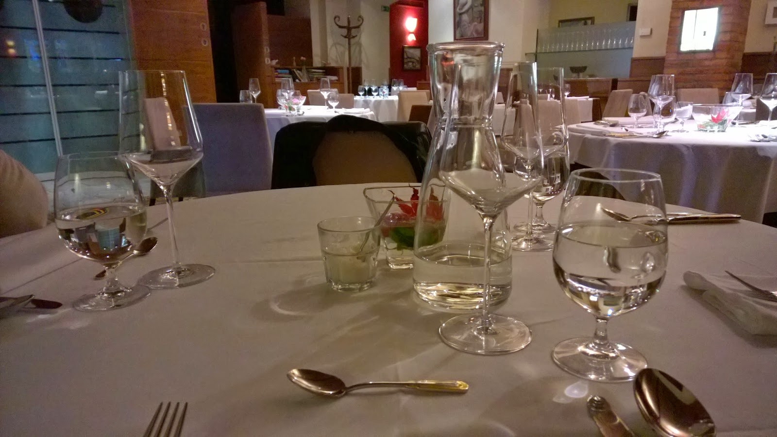 Cena menija za eno osebo (pozdracv, 3 hodi, 2 kozarca vina = 29 EUR