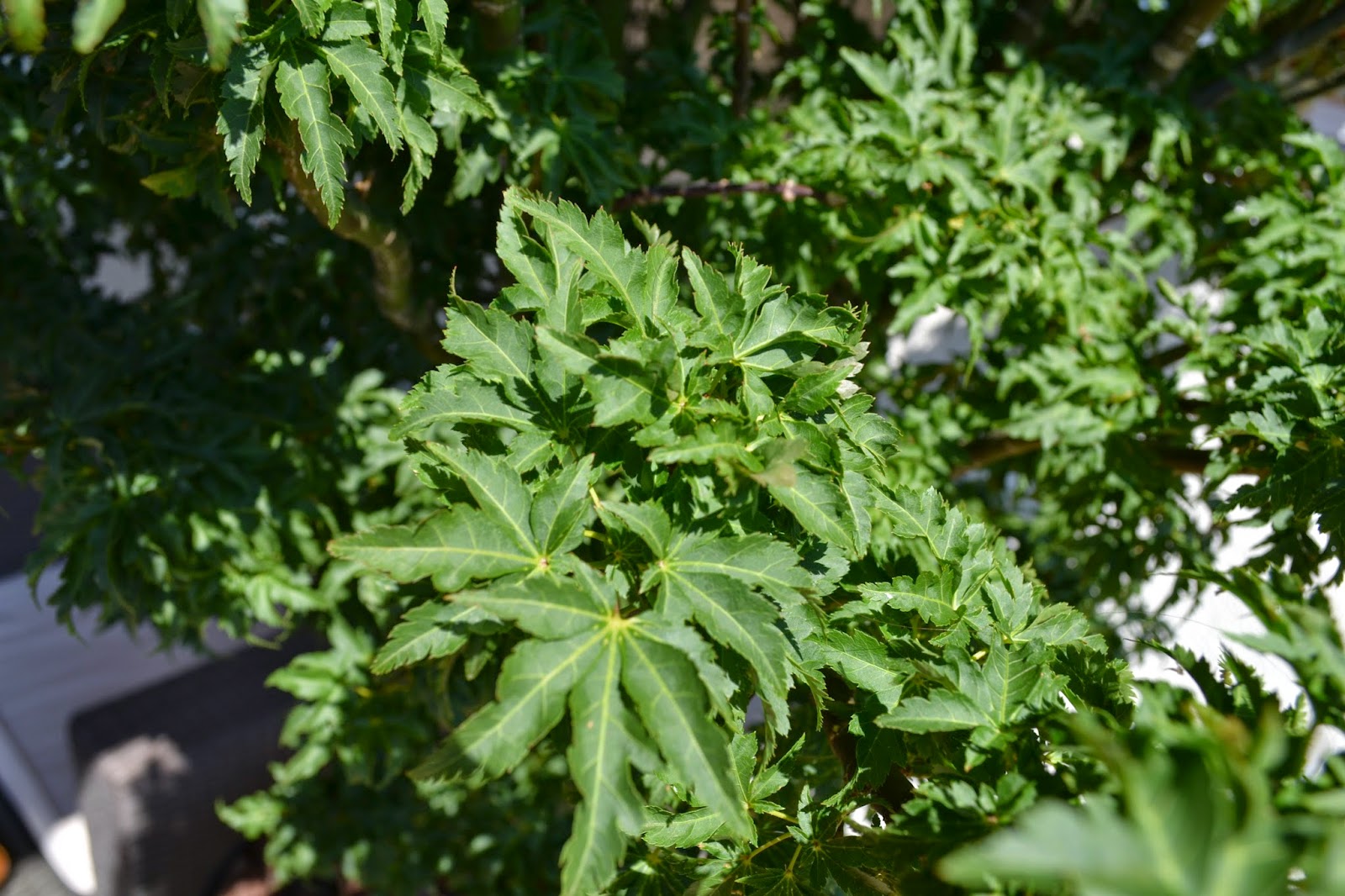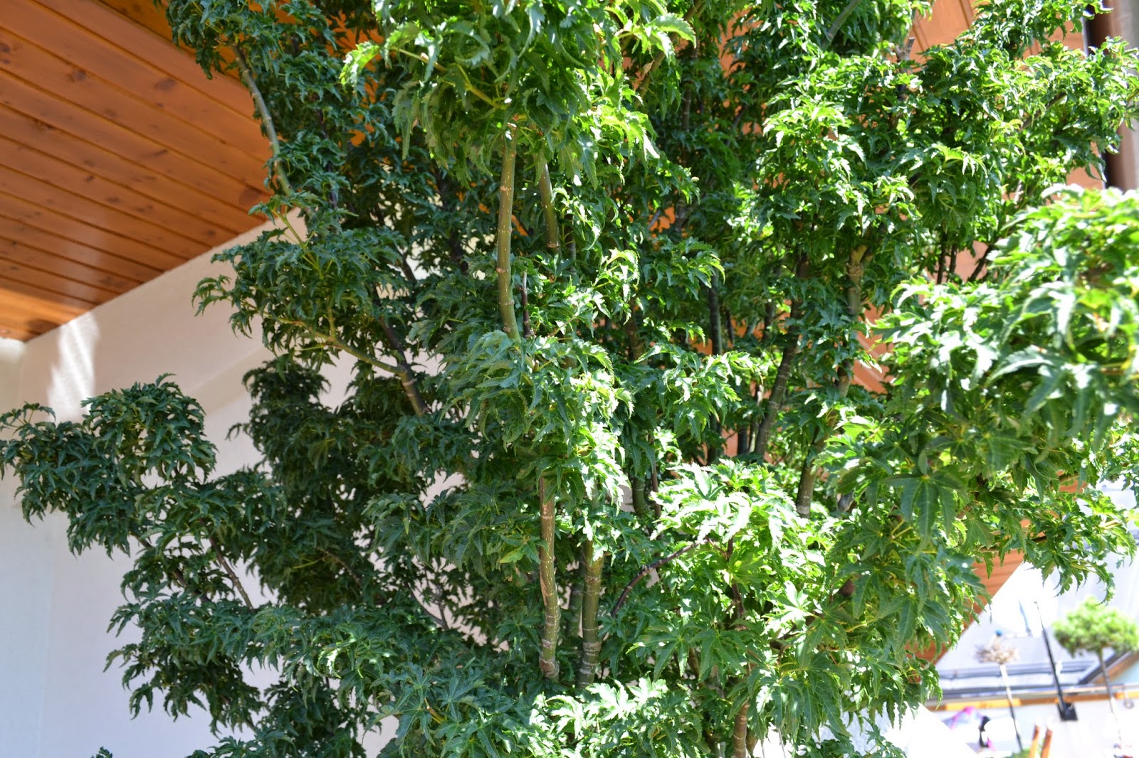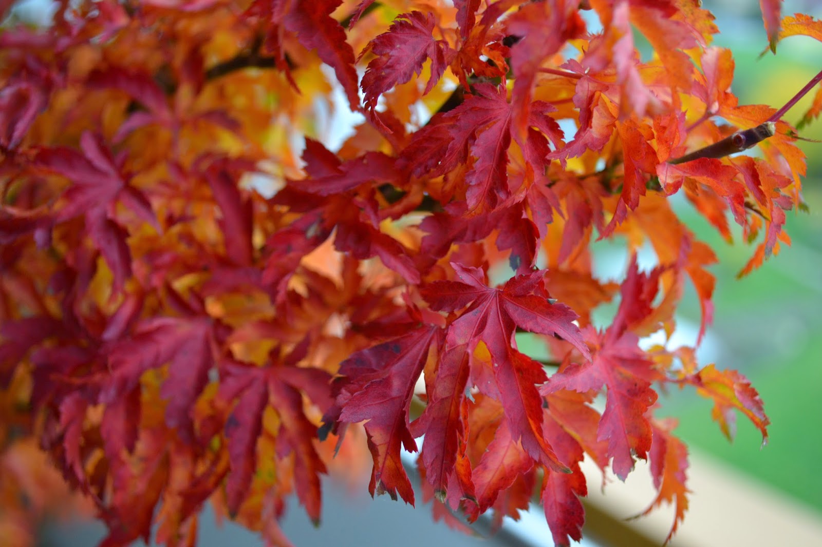 Ker nikakor nisem našla pravega, se je nakup že kar zavlekel v pozno pomlad, tako da so bili vsi javorji že z listjem. Potem pa me med vnovičnim obiskom vrtnega centra prodajalec opozori na zelo redek primerek japonskega javorja – shishigashiro. Zelen, košat, mali lističi – kralj japonskih javorjev. In bila je ljubezen na prvi pogled, ki traja še danes. Celo poletje je najina “shishigashira” košata, zelena, ljubka. Jeseni pa se najprej obarva oranžno in nato živo rdeče. Prekrasna je!