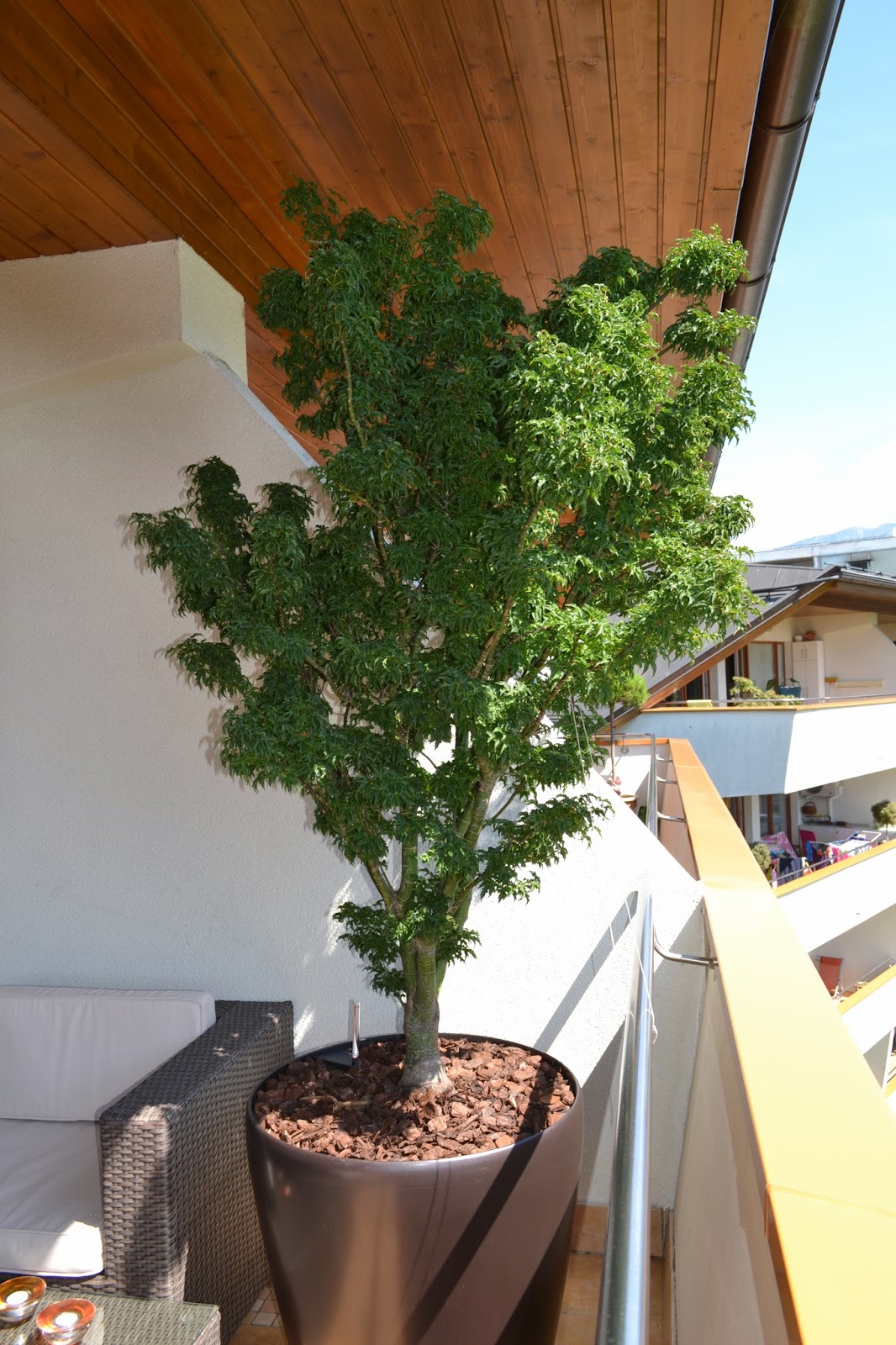 Pred letošnjim poletjem sem si zaželela japonski javor. Enostavno jih obožujem in ko se sprehajam po mestu, samo kričim – “glej javorček”, “glej tega”, “joj, poglej, kako je ta lep!”. Zato sem se spomladi podala v raziskovanje in približno sem vedela, kaj si želim. Mali listki, rdeče barve in seveda majhne velikosti, da bo primeren za najino teraso.