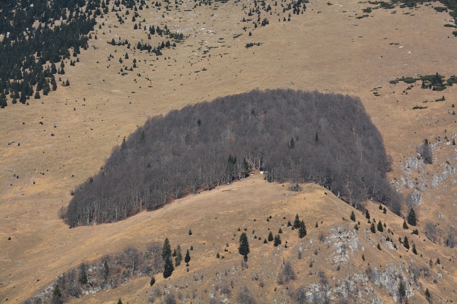 | Hudičev boršt ali gozdna zaplata na strmem travnatev pobočju. Sv. Jakob, Slovenija |