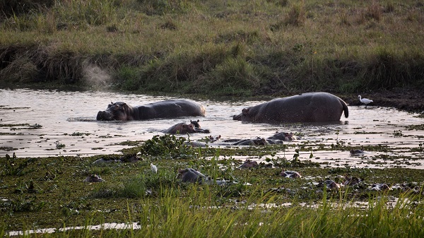 Nekaj metrov pred vasjo Pakwach pa še eno darilo – rečni rokav z nešteto nilskimi konji, ki se “ravsajo” ob popolnem sončnem zahodu.