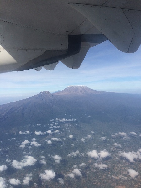 Let seveda ponovno odličen s pogledom na znameniti Kilimanjaro. Leteli smo povsem blizu najvišjega vrha Afrike, ki je zelo priljubljen med hribolazci. Najvišja točka je Uhuru Peak s 5.895 metri na robu kraterja ognjenika. Dva druga vrhova sta prav tako ugasla ognjenika: Mawensi (5.149 m) in Shira (3.962 m).V svahiliju ime gore pomeni “bleščeča se gora“.