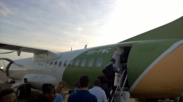 Let sva imela že ob 5h zjutraj in Kenya Airways se je izkazal za zelo dobrega letalskega prevoznika. Do Nairobija smo leteli dobro uro, kjer prestopiva na drugo letalo, ki pa je stari avion s “propelerji“. Mene je pošteno zmrazilo.Da ne govorim o potnikih, ki so ravno prileteli iz Evrope kako blede obraze so imeli.