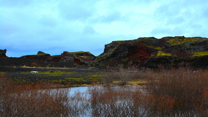 V tem območju so zelo opazni “rdeči hribčki” ali Rauðhólar. Rdeči hribčki so ostanki psevdokraterjev na poljih lave. Prvotno je bilo tukaj več kot 80 takšnih psevdokraterjev in so stari približno 5200 let. Danes jih je še precej manj, saj so material po 2. svetovni vojni uporabili za gradnjo cest in letališča.