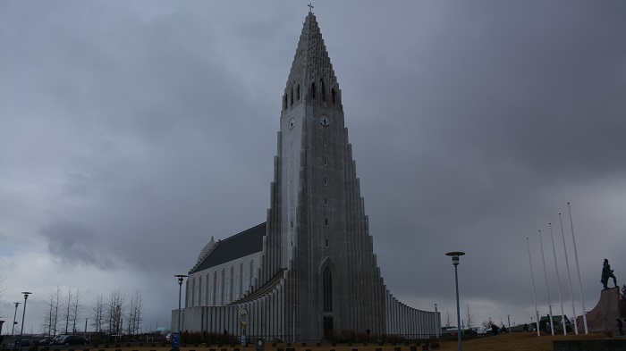 Peš sva se odpravila po ulicah Reykjavika in najprej poiskala znamenito cerkev Hallgrímskirkjo. Cerkev je vidna že od daleč in se kaže v vsej svoji futuristični podobi. Zares veličastno! Vhod je bil zaprt, tako da si notranjosti žal nisva ogledala.
