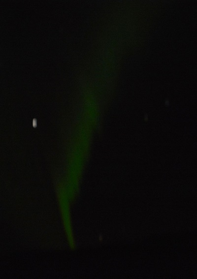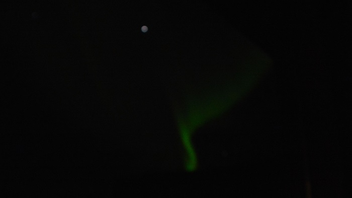 Po napornem in dolgem dnevu sva prenočila v Víku, na samotnem mestu ob jezeru. Skozi okno sva lahko opazovala mnogo ptičev in pozno ponoči prvič v življenju doživela tudi ples škratkov na nebu. Za severni sij april ni več najboljši čas, a vseeno nama je uspelo. Okrog polnoči se je začelo dogajati, saj je bila noč jasna in sončeva aktivnost precej velika. Tisti, ki poznate slike fotografov severnega sija, veste, kako te slike izgledajo. Moram priznati, da mi je šele sedaj povsem jasno, kako zelo umetno popravljene so te slike. Težko je fotografirati severni sij, ga je pa izredno lepo doživeti. Kot bi škratki s prahom posuli nebo in nato se v naslednjih minutah intenziteta prahu poveča in pobarva najprej v zeleno barvo. Nato počasi izgine… in tako se ponavlja in ponavlja.