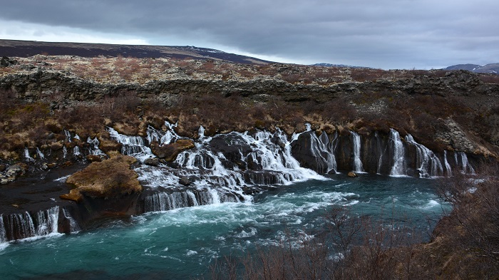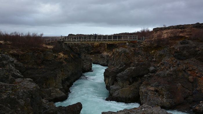 Kmalu prispeva še do zadnjega cilja za danes in sicer dveh slapov – Hraunfossar in Barnafoss. Oba naravnost čudovita in vredna dodatnih prevoženih kilometrov. Hraunfossar tvori serija manjših slapov v dveh ali celo več nivojih, ki si sledijo v zaporedju več kot 900 metrov v širino. Slap Barnafoss pa je le nekaj 10 metrov višje in v prevodu pomeni “otroški” slap, ki pa ga je dobil po tragediji, ki se je po pripovedih na tem mestu zgodila. Utopila naj bi se dečka med svojo igro, ko sta skušala prečkati slap po naravnem mostu, ki ga vidimo še danes.