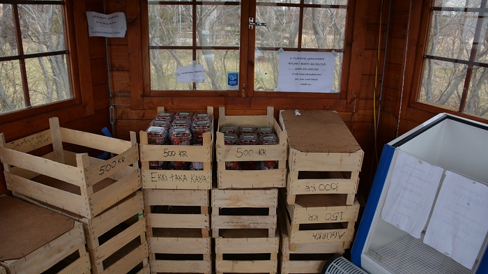 Na poti nazaj v hotel sva lahko le občudovala igro narave. Vremenske razmere so se spreminjale iz minute v minuto – dež in sonce sta si izmenjavala trenutke. Midva sva le uživala in si privoščila jagode v samopostrežni prodajalni. Ob cesti lesena uta polna jagodnih dobrot, kjer si izbereš poljubne dobrote in denar vržeš v leseno skrinjico.