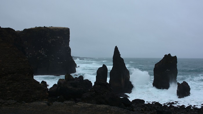 Naslednja postojanka je bilo Garður ter obala na skrajnem zahodnem delu polotoka. Polotok je skoraj povsem nenaseljen, za razliko od mini mestec z nekaj hišami. Pokrit je z ostanki lave in na nekaterih mestih že poganja prvi mah. Nezemeljske površine so tako vidne povsod. Vreme nama ni prizaneslo, saj je občasno deževalo in veter je močno pihal. V takšnem vremenu, ko jaz nisem zdržala 2 minuti na prostem zavita v najboljša smučarska oblačila, sta se dva dečka v vasi preganjala s kolesom brez rokavic in kape.