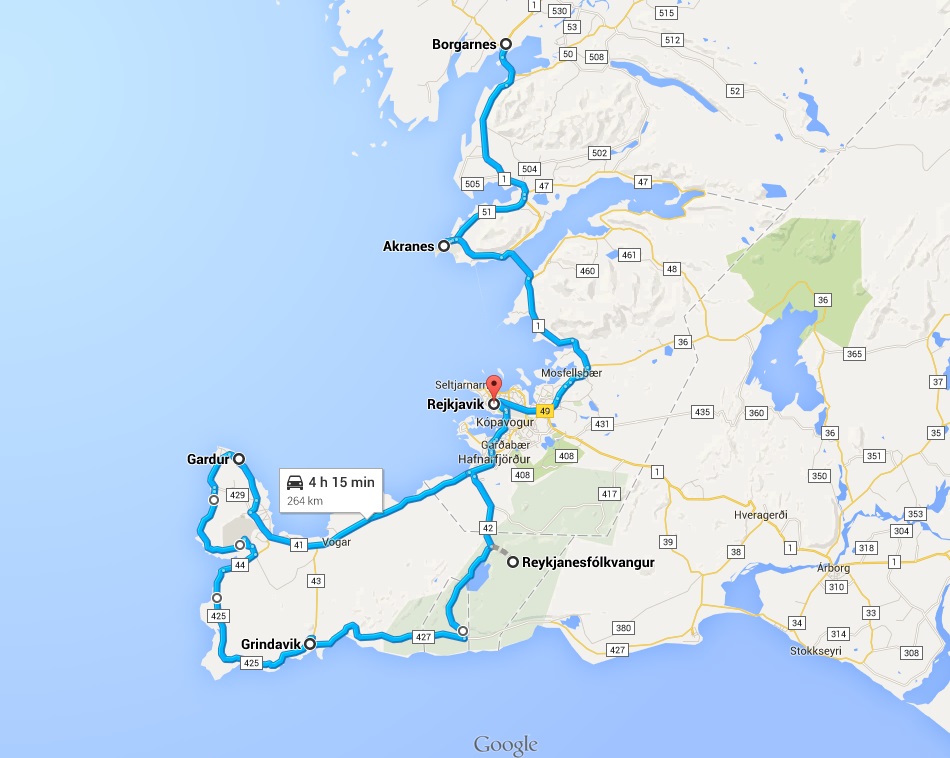 Včeraj so nama sporočili, da danes ponovno ne bo ogleda ork, zato sva imela že vnaprej pripravljen plan B. Na poti iz Borgarnesa proti Reykjaviku sva si najprej ogledala pristaniško mestece Akranes, nato pa cel dan preživela ob raziskovanju polotoka Reykjanes – majhna mesteca, kmetije s konji, golf igrišče, naravni geotermalni vrelci, tektonska prelomnica, sušilnica polenovk ter povsem prazna nezemeljska pokrajina.