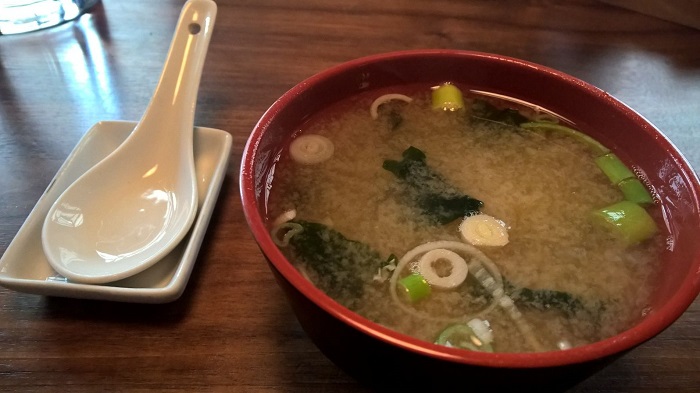 Krožnik 18-ih različnih sušijev pretežno s tuno in avokadom, miso juha in kozarec vode vas bo stal okroglih 28 EUR.