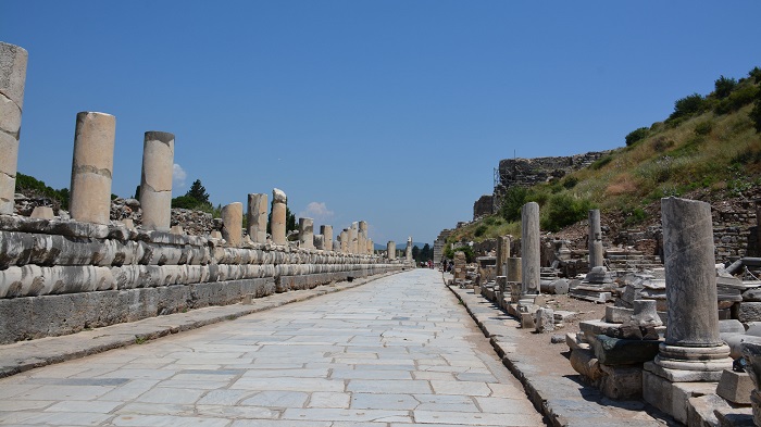Dobri dve uri vožnje po lepih in prostranih cestah obdanih z ogromnimi nasadi oljk sta naju pripeljali do najlepšega in najbolj ohranjenega rimskega mesta v Anatoliji. Rimski Efez se razprostira med dvema gričema, ostanke celotnega Efeza pa najdemo na precej širšem področju. Zgodovina mesta sega v začetek 1. tistočletja pr. n. š., leta 130 pr. n. š. pa je postal prva prestolnica rimske province Azije. Po nekajurnem ogledu sva pot nadaljevala ob obali, kjer so večji in manjši turistični hoteli. Najin izbor je bil majhno mestece Güzelcamli, ki slovi po lepi plaži in kičastih sončnih zahodih.