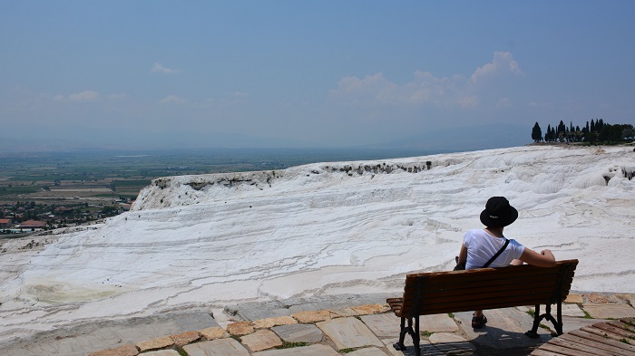 Pamukkale si lahko ogledamo in jih doživimo ob sprehodu po označeni poti, kjer je nekoč potekala prava asfaltirana cesta in v neposredni bližini je bilo precej velikih hotelov. V šestdesetih letih so hotele porušili, zaprli cesto in jo preoblikovali v turistično pot ter ob poti zgradili umetne bazenčke, v katerih se obiskovalci zelo radi namakajo in ob tem fotografirajo. Pravi bazenčki pa ostajajo levo, desno, zgoraj, spodaj ob tej poti in tam je hoja strogo prepovedana.