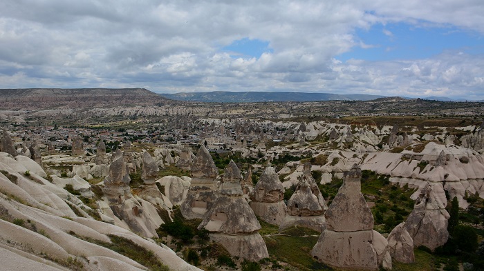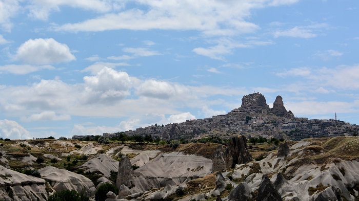 Končno je napočil čas za pravljično deželo Kapadokijo. Nikakor si nisem mogla predstavljati te čudežne pokrajine v živo in komaj sem čakala na ta trenutek. Najprej sva se ustavila v mestu Uchisar, kjer sva zagledala grad, ki se visoko bohoti nad mestecem. Že od daleč se vidi njegova “čudežna” izklesana podoba. Na vrhu gradu je razgledna točka, od koder si lahko končno narišemo pred očmi podobo Kapadokije.