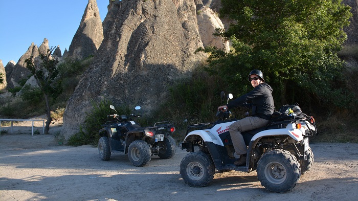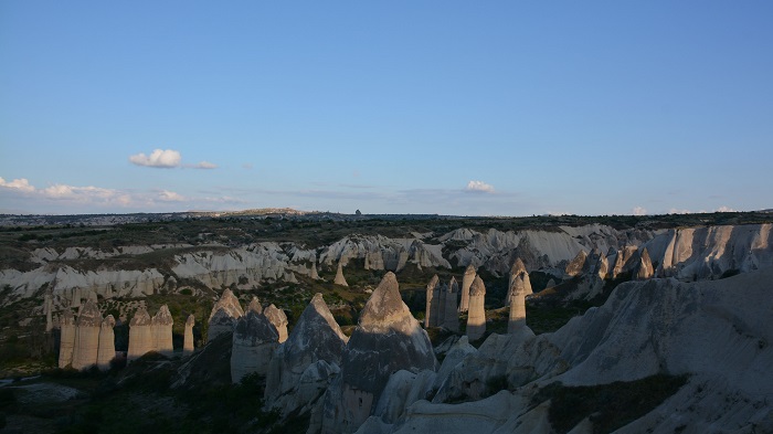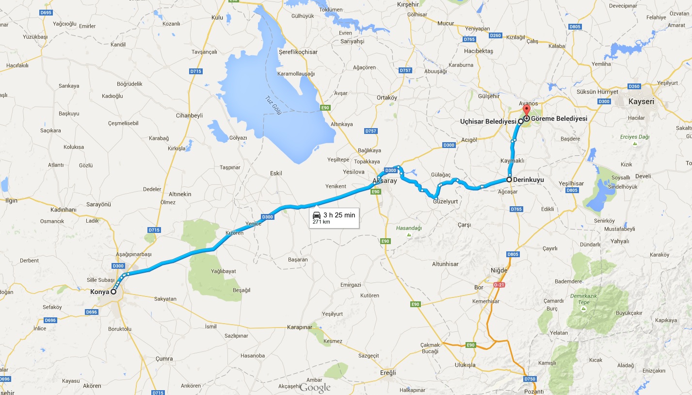 Zgodaj zjutraj sva krenila iz Konye proti pravljični Kapadokiji. Ker je cesta resnično lepa in prazna, sva že po eni uri vožnje prispela v karavanseraj Sultanhani, ki velja za najbolje ohranjenega v celi Anatoliji. Naprej nisva nadaljevala naravnost do palčkove dežele, ampak sva zavila na stransko cesto, tako da sva prispela naravnost v Derinkuyu, kjer sva si ogledala podzemno mesto. Nato je končno napočil čas, ki sva ga oba nestrpno pričakovala. Opoldan sva že prispela v Kapadokijo, se povzpela po razgled na grad Uchisar ter divjala z štirikolesnikom po pravljični deželi.